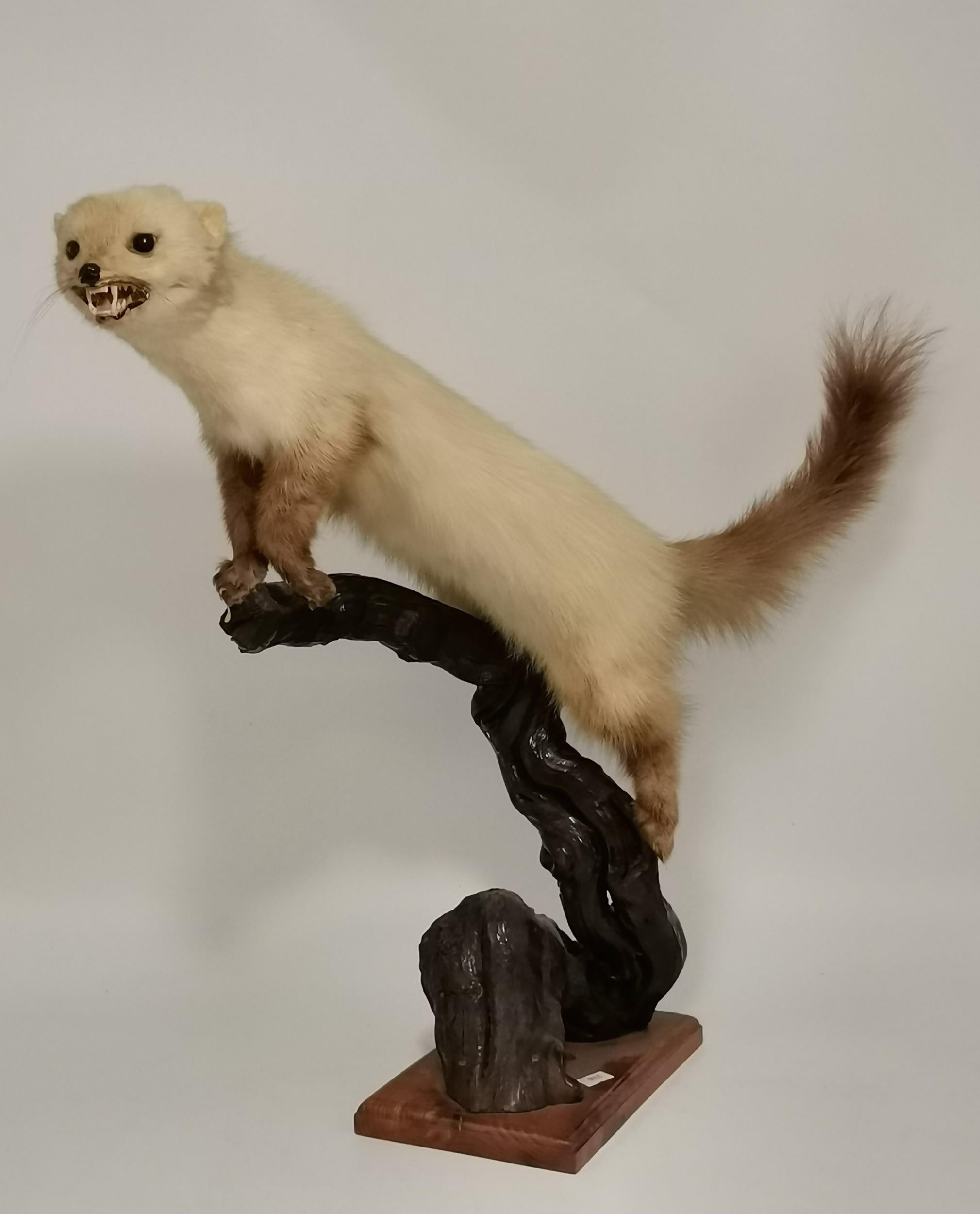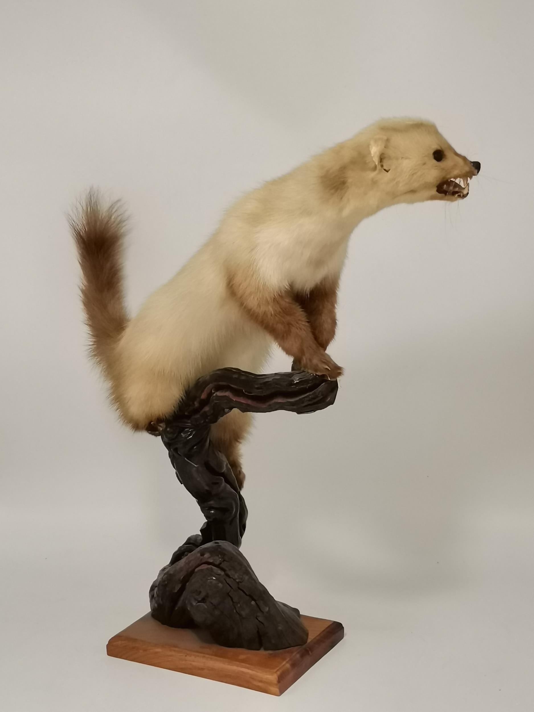 A Taxidermy Pine Martin raised on an a branch H55cm x L62cm