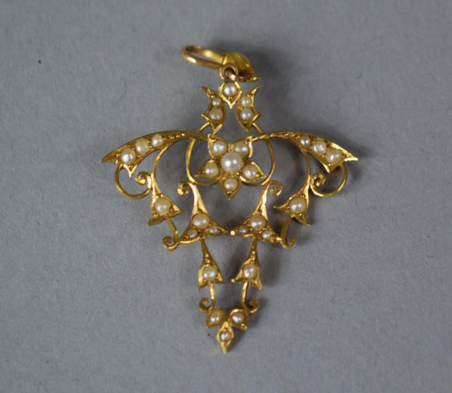 A Pretty 15ct Gold and Seed Pearl Edwardian Pendant, 3.9gms
