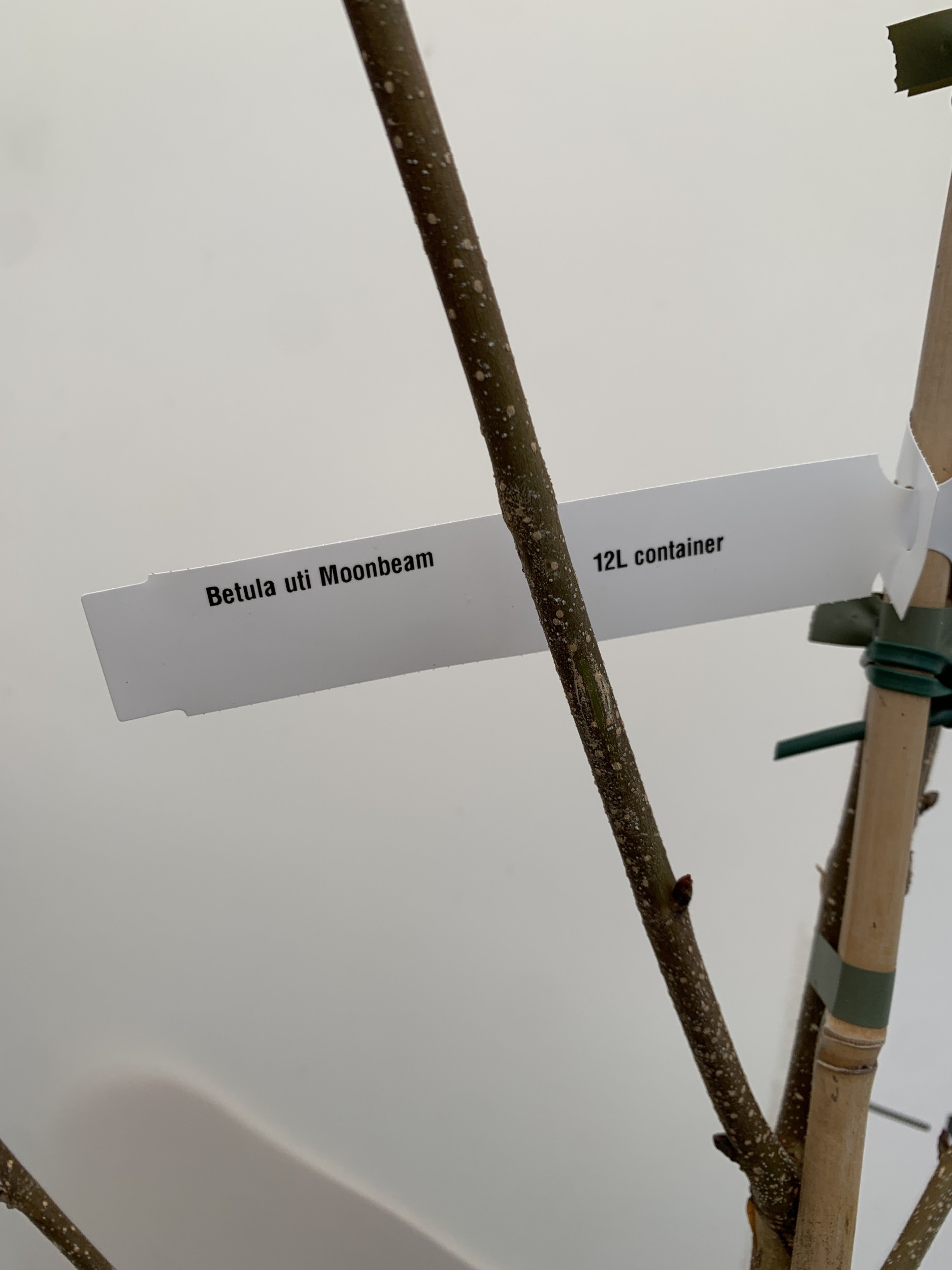 ONE BIRCH BETULA UTILIS 'MOONBEAM' IN A 12 LTR POT. THIS BIRCH IS APPROX 2.3 METRES TALL. SMALLER FINE BIRCH THAN ITS CONTEMPORARIES MAKING IT PERFECT FOR SMALL GARDENS. HAS BRIGHT WHITE PEELING BARK