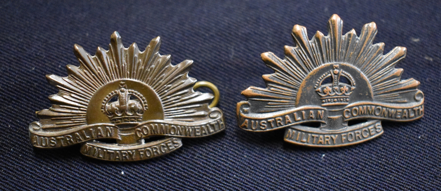 Australian Commonwealth Military Forces WWII Officers Collar Badge Pair (Bronze), lugs