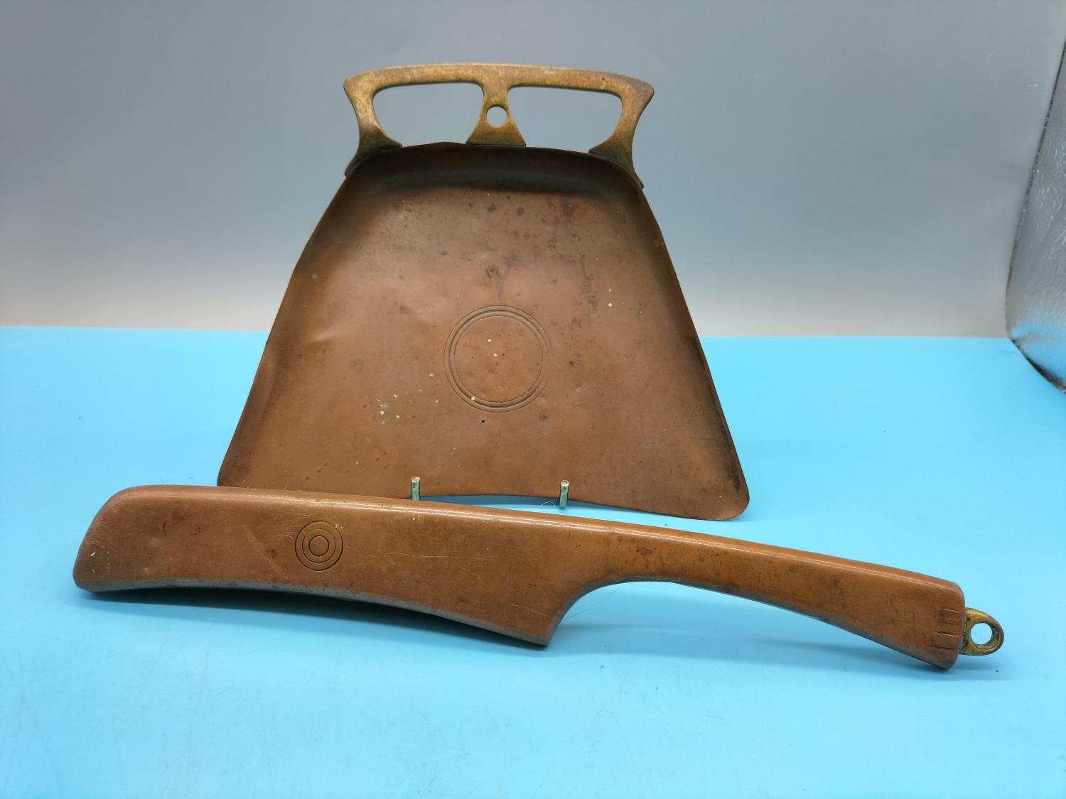 Vintage Art Nouveau Copper Crumb Tray and Brush. 29cm Long.