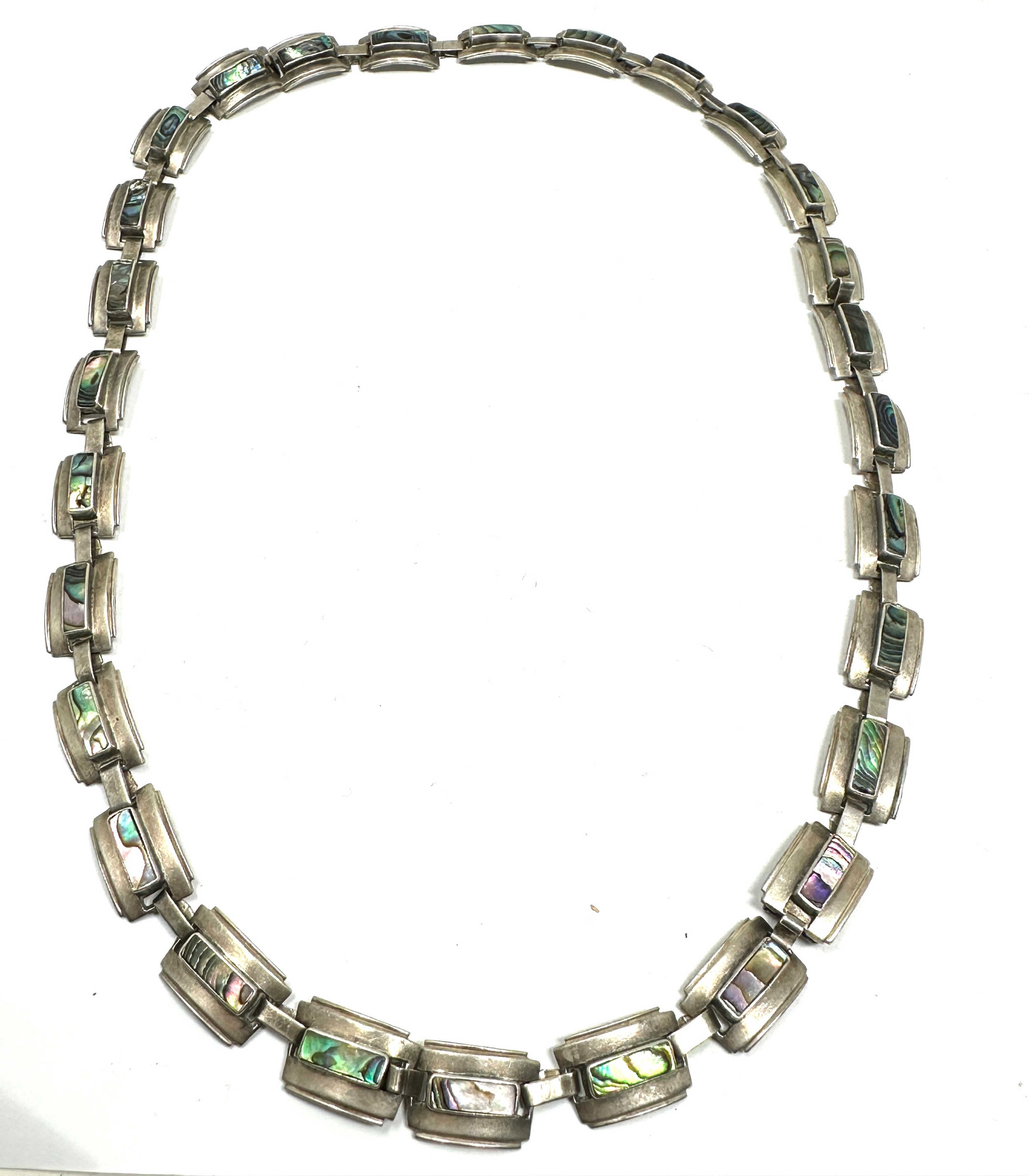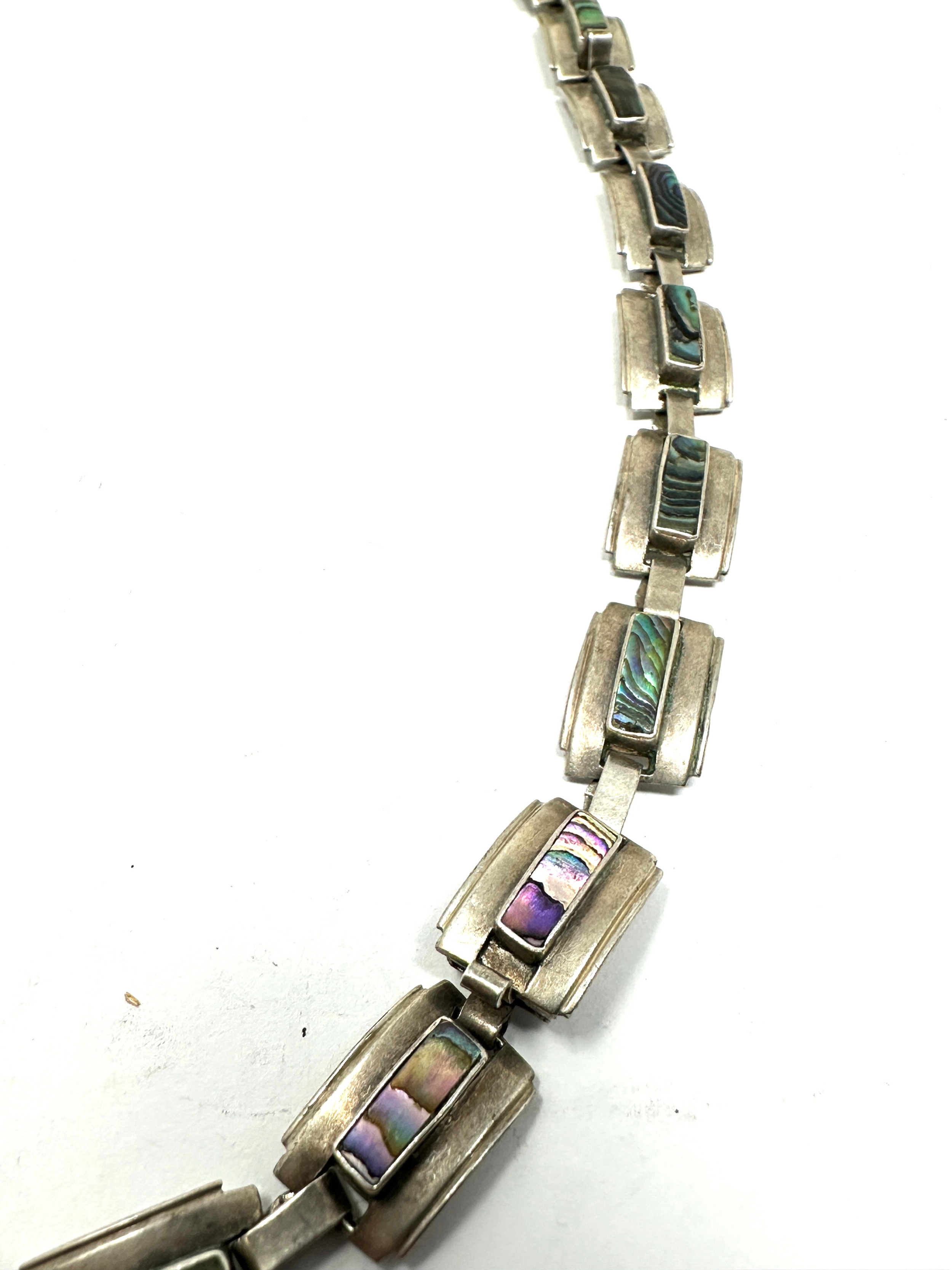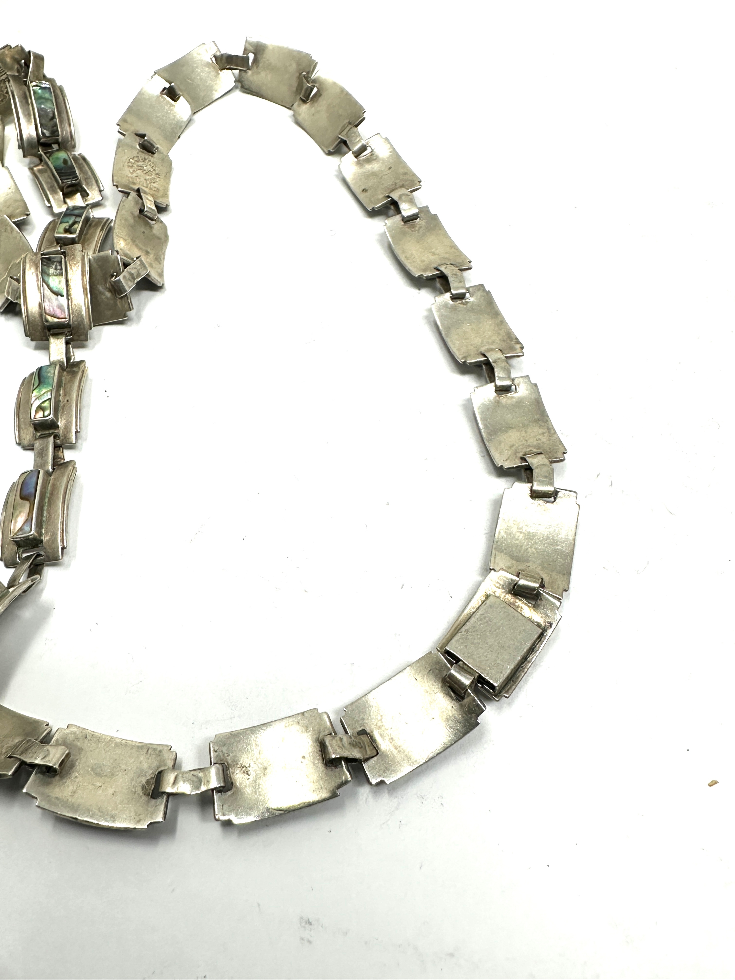 Vintage mexican silver abalone set necklace weight 41g measures 53cm long