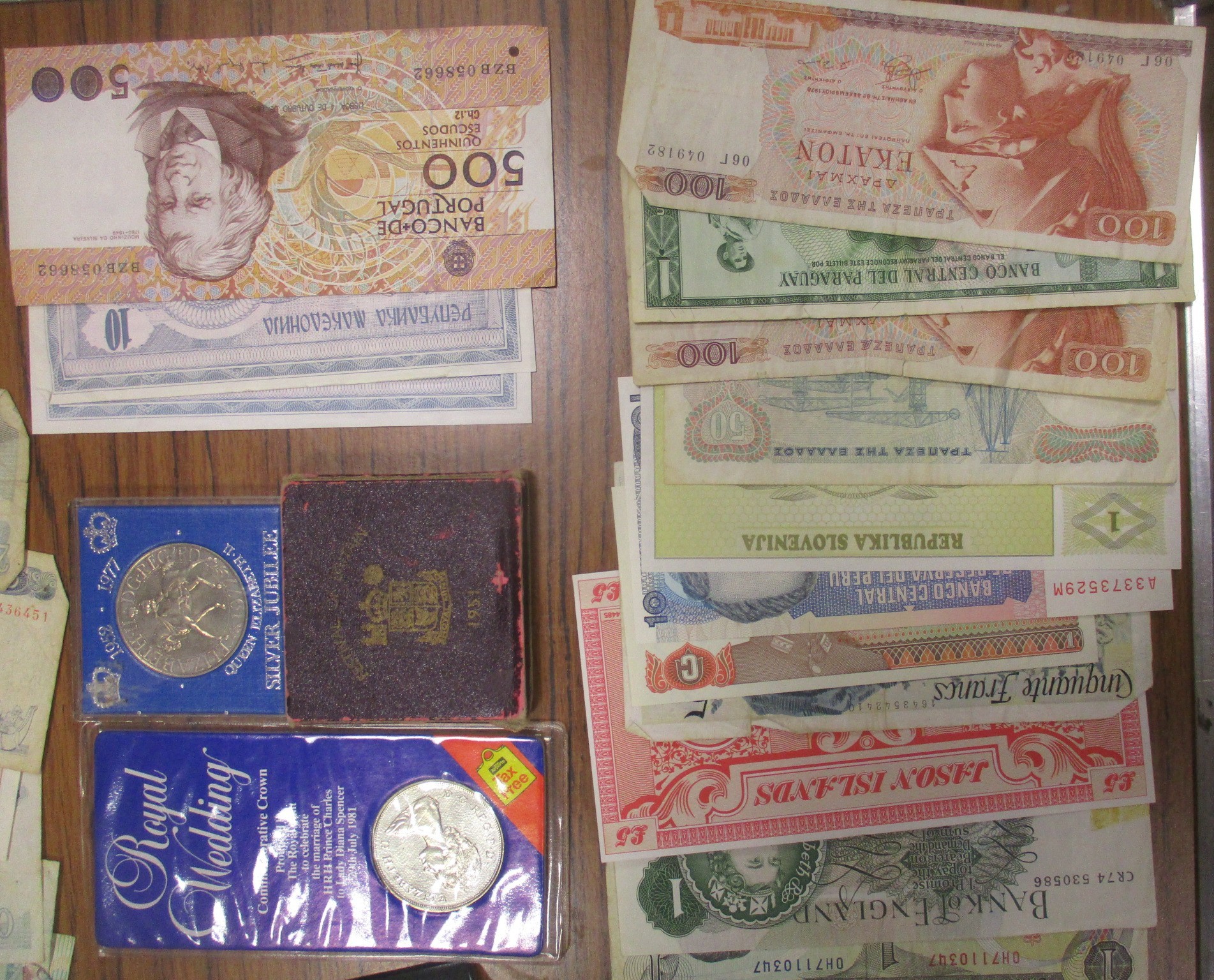 Collection including GB crowns circulated and commemorative plus world ranges from Canada, France, Germany, Hong Kong etc and some banknotes, generally fine. (T)