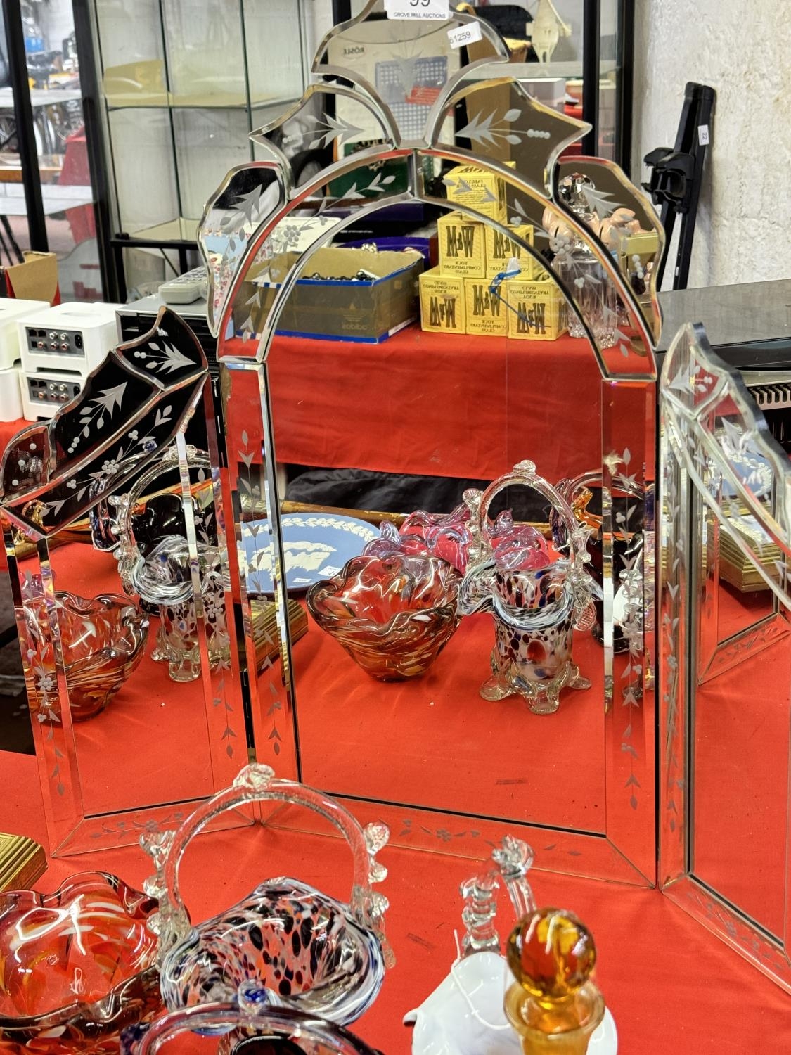 BEVELLED EDGE ETCHED TRIPLE DRESSER MIRROR
