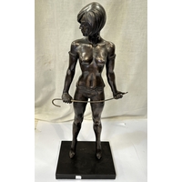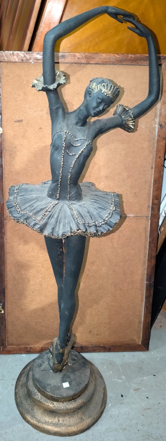 A large painted cast iron figure of a ballerina on pedestal base, 120cm
