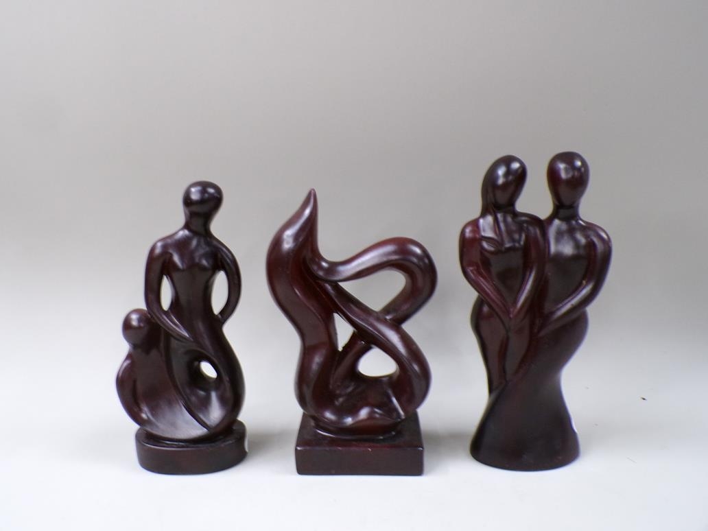 SET OF THREE CERAMIC BRONZED FIGURES, 26CM H
