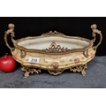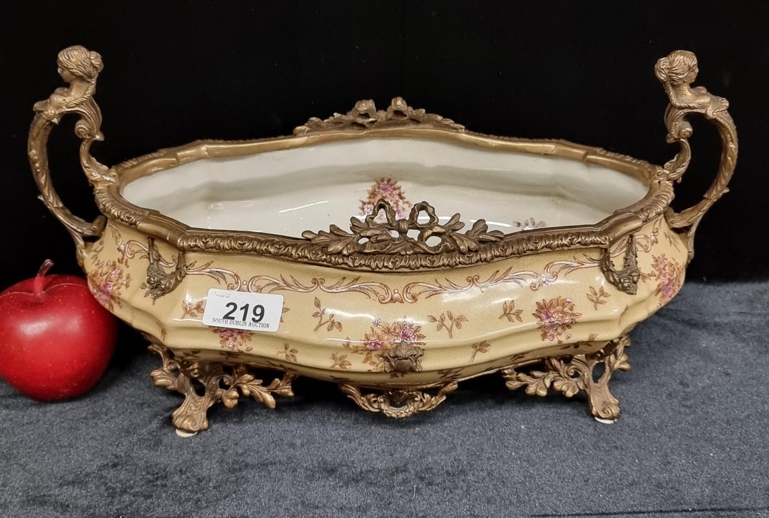 A Wong Lee boat shaped tureen with stunning ornate foliate detail, bronze mermaid figural handles and four scroll feet.