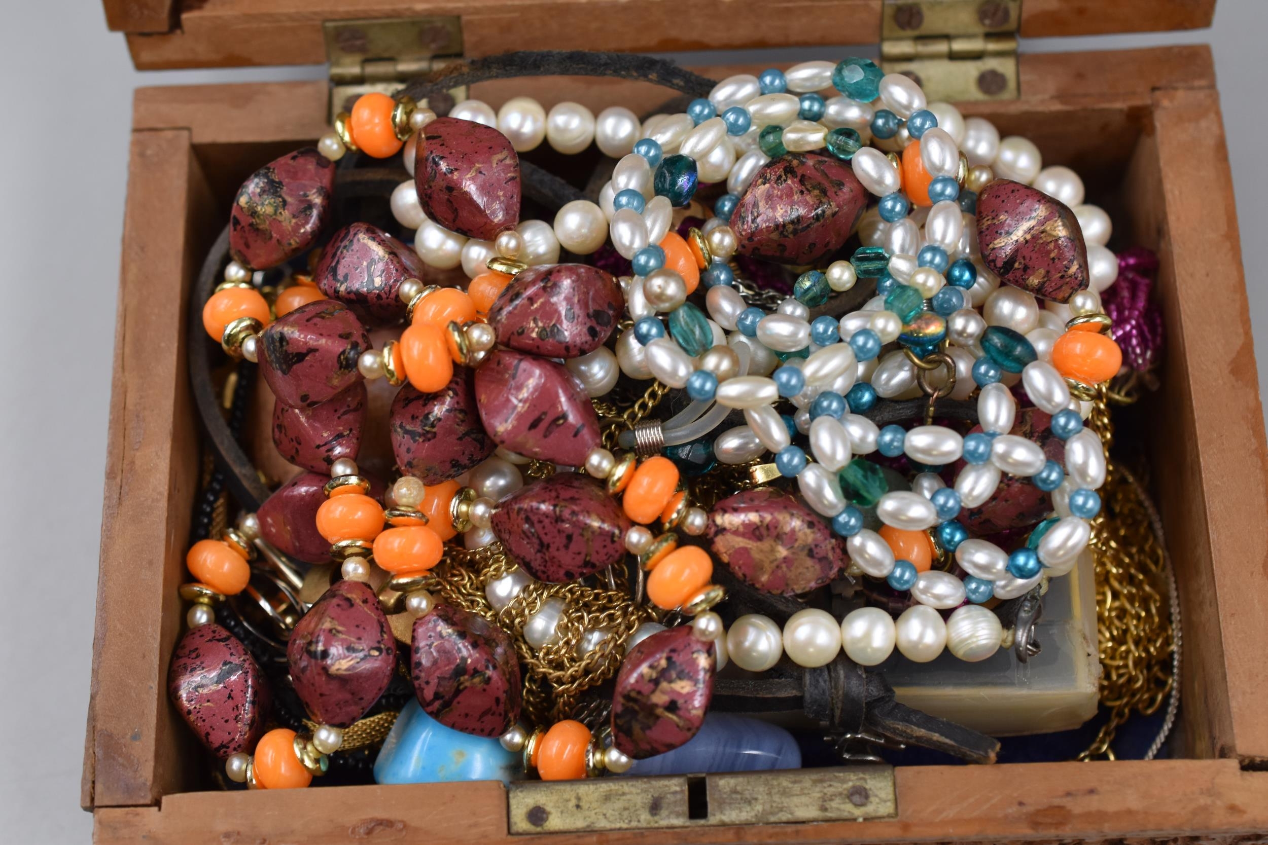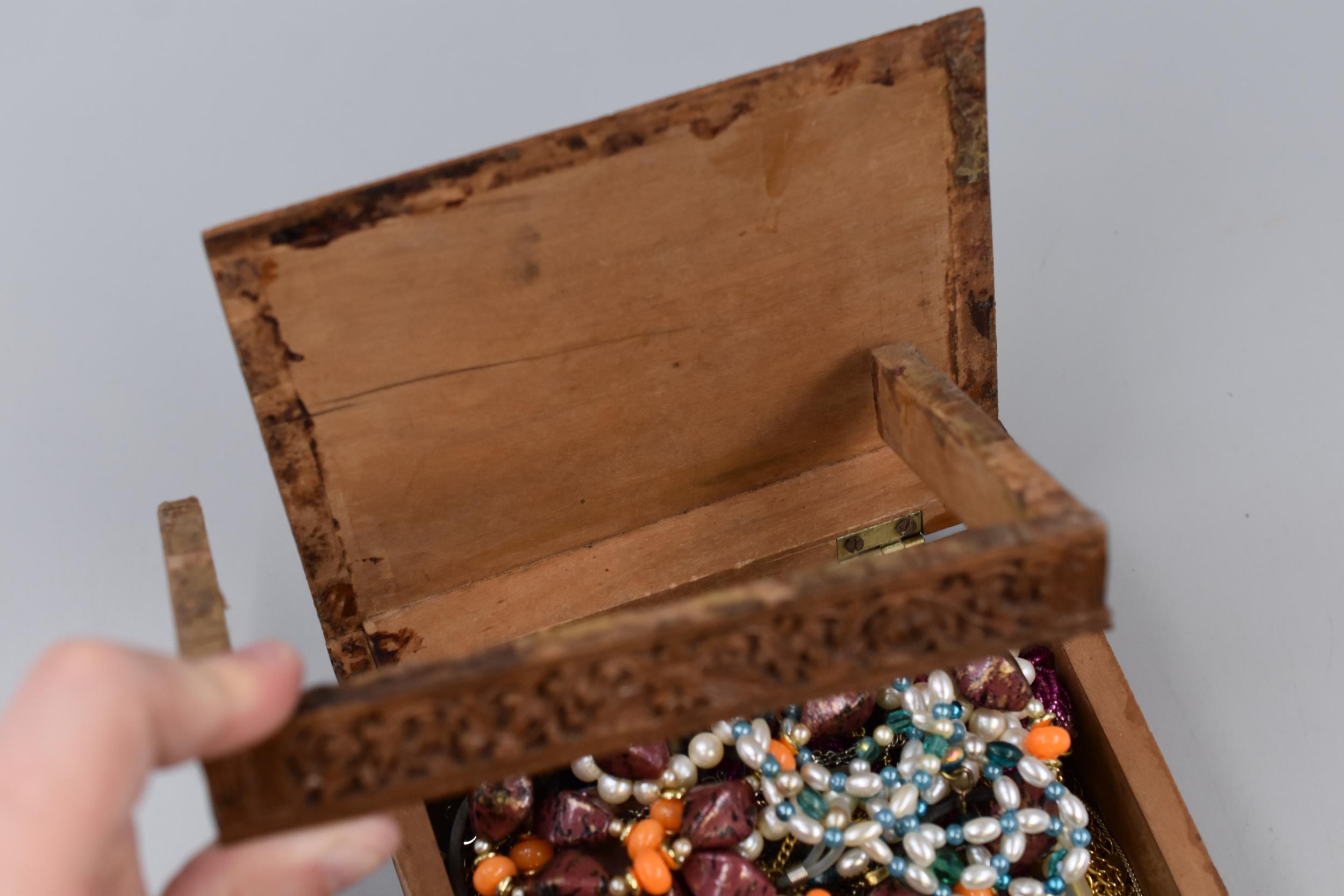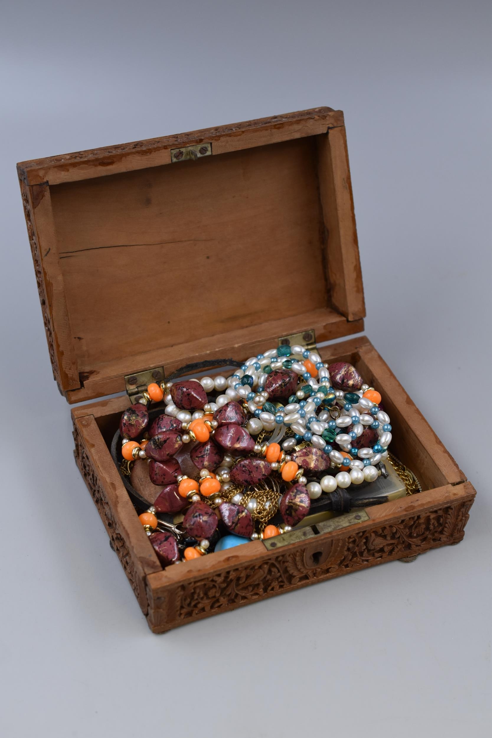 Unsorted Jewellery In Wooden Hand Carved Box (As Found)