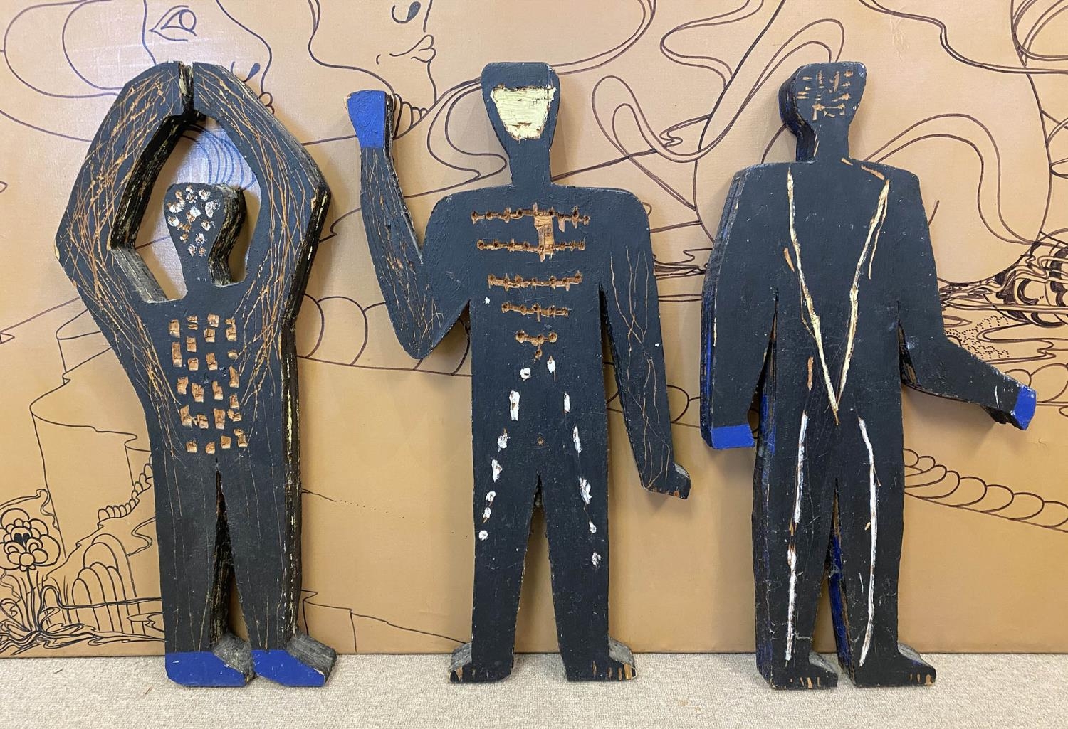 PHILIP SMITH (Contemporary British) 'Silhouettes', carved wood, 71cm x 40cm x 5.5cm each. (Subject to ARR - see Buyers Conditions)
