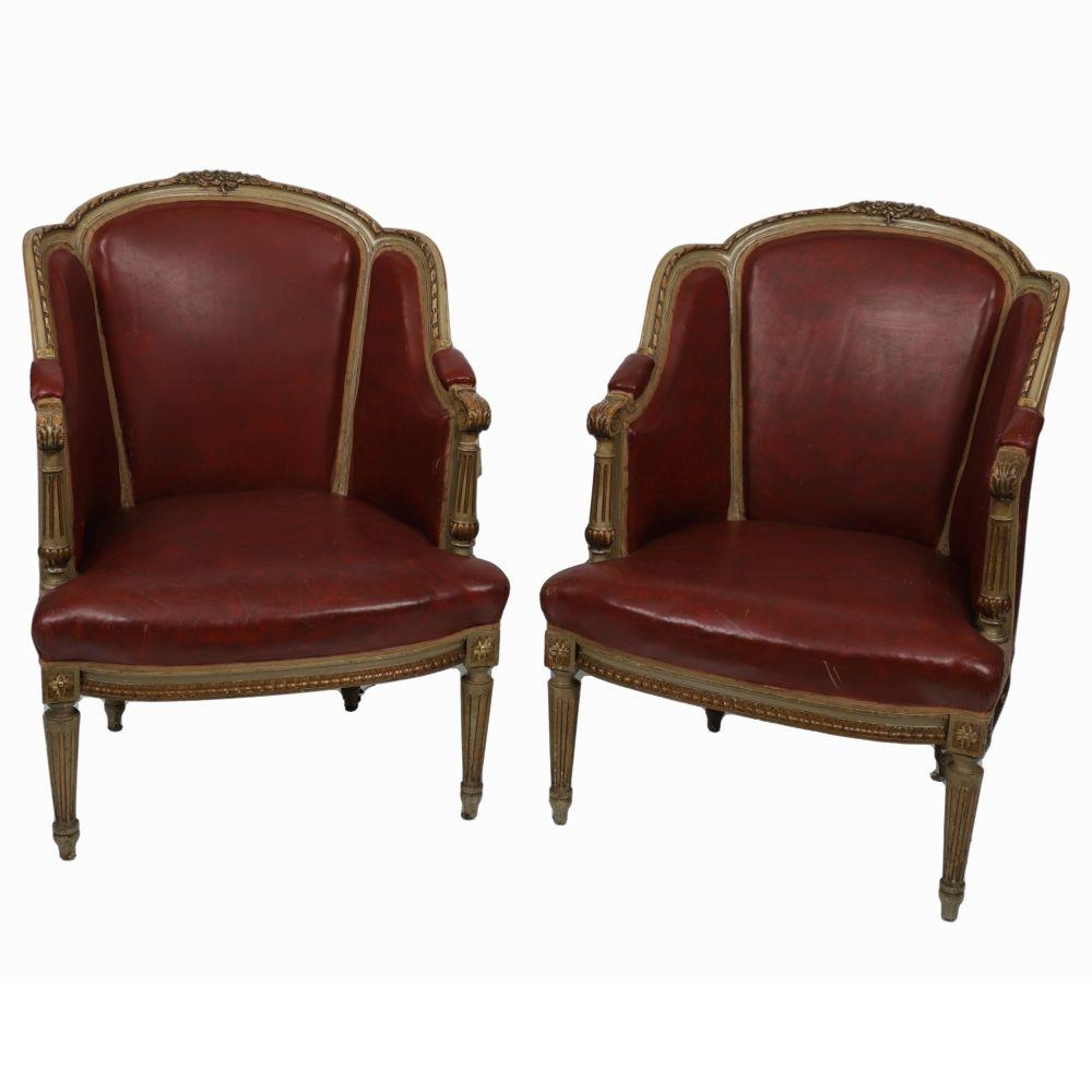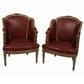 PAIR EDWARDIAN HIDE UPHOLSTERED LIBRARY CHAIRS