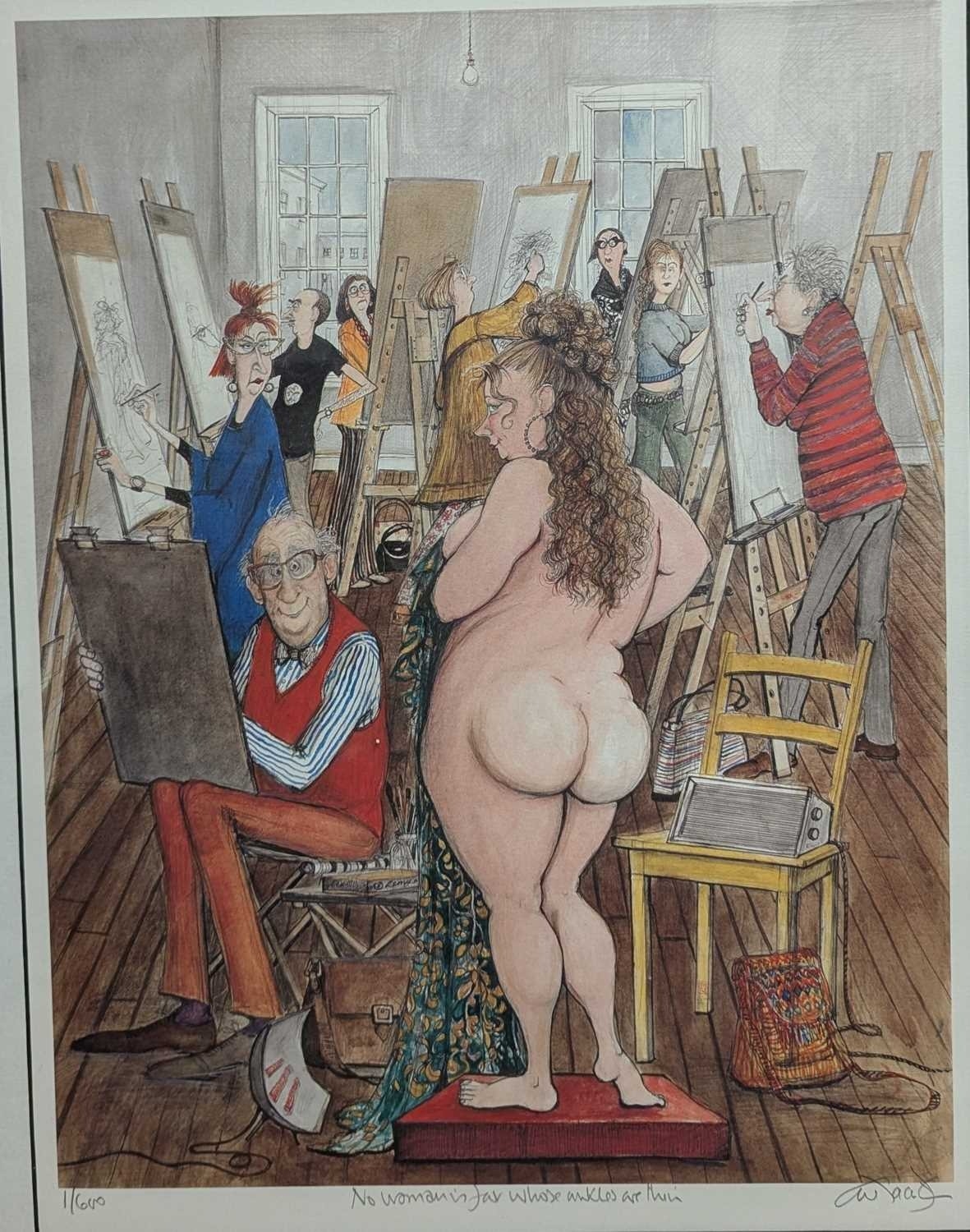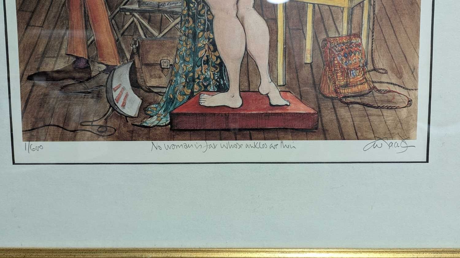 After Sue Macartney-Snape (Australian, b. 1957) - Late 20th century limited edition print titled 'No woman is fat whose ankles are thin'. Numbered 1/600 titled and signed by the artist in pencil to the lower right margin. Framed, mounted and glazed. Measuring approx. 73cm x 59cm.