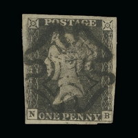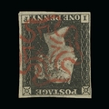 Great Britain - QV (line engraved) : (SG 3wi) 1840 1d black, plate 1a, IF, WATERMARK INVERTED, 4 tiny (at left) to very good margins, neat crisp red MC, very fresh, v.f.u. Cat £4000 (image available) [US1]