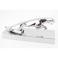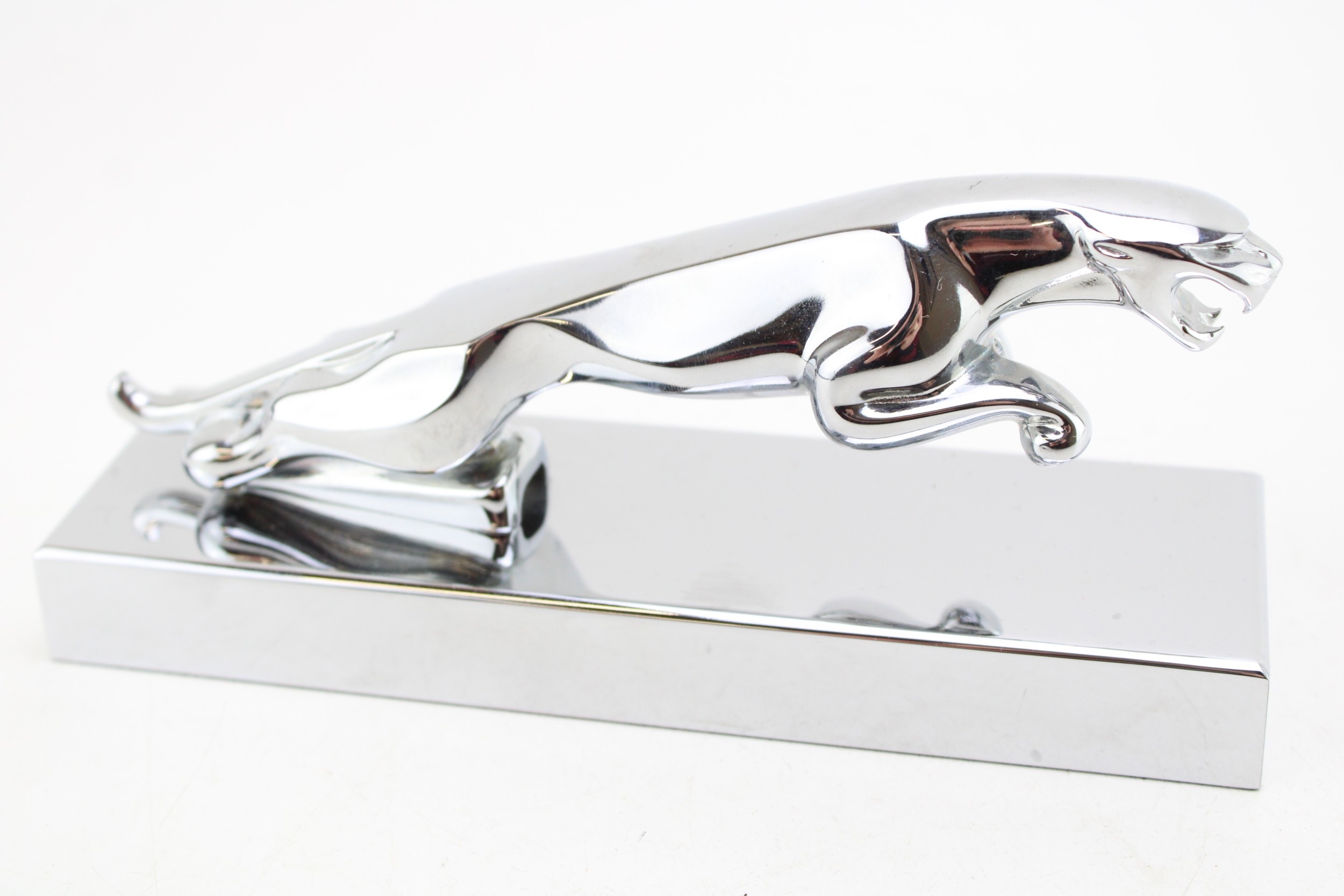 Ashwater chrome Jaguar car mascot paperweight, 19.5cm wide, 8cm tall.