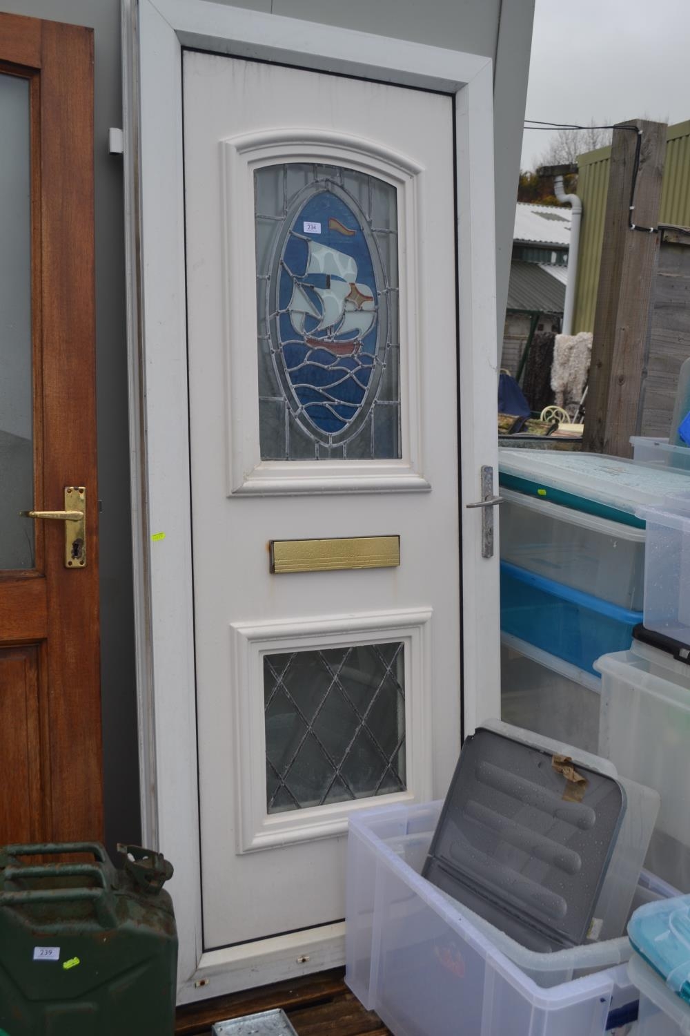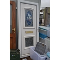 uPVC door, with stained glass inset. W83cm