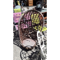 A black wooden garden bench.