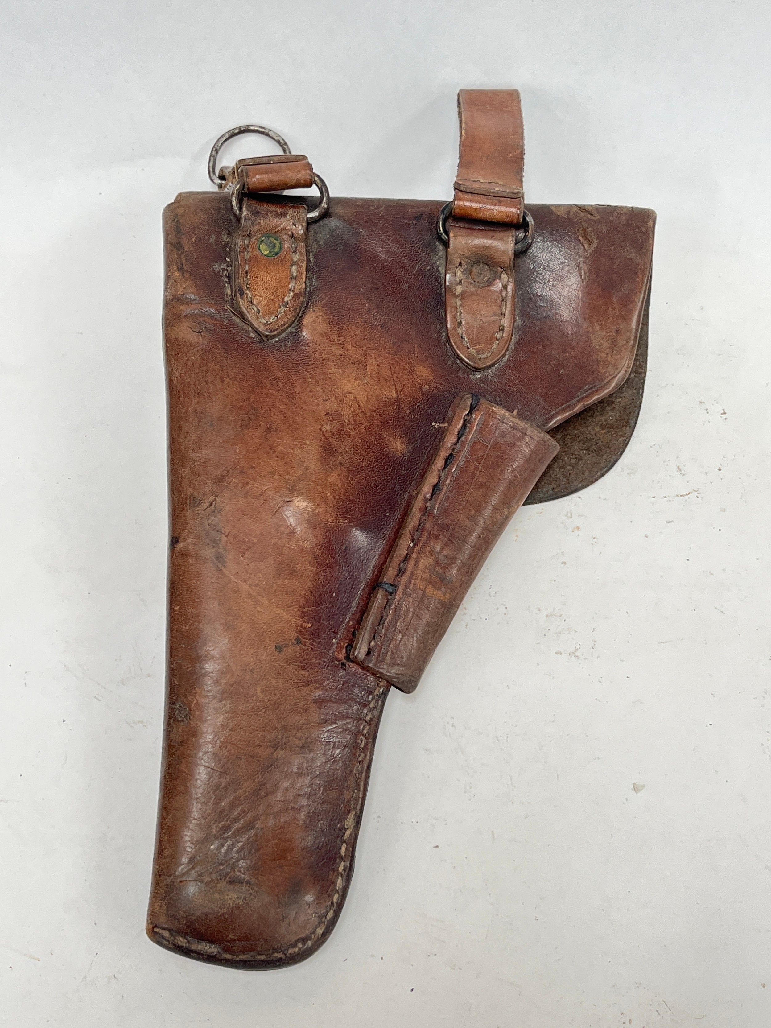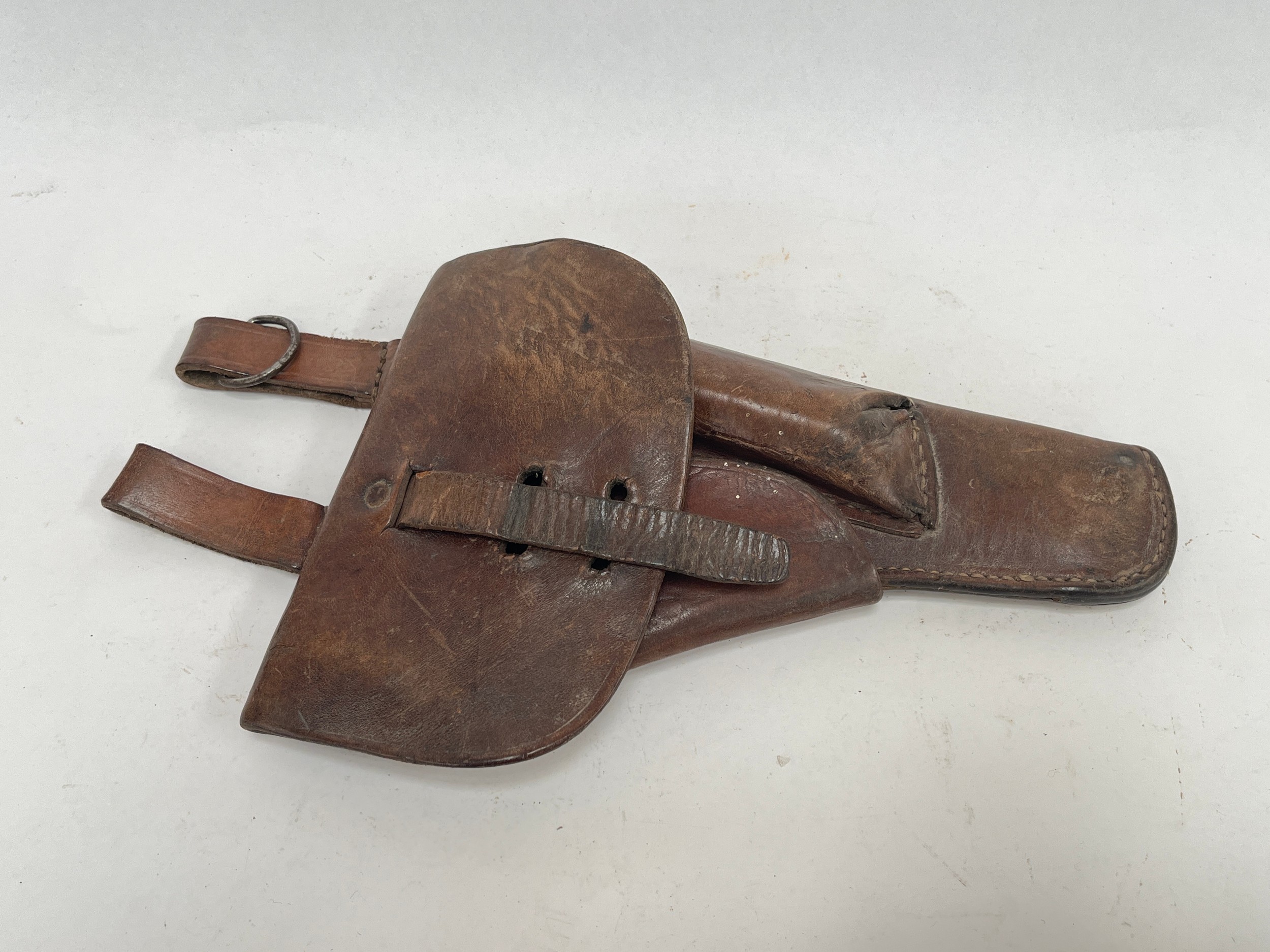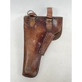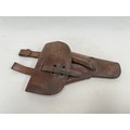 A brown leather pistol holster, circa WWII, some stitching a/f