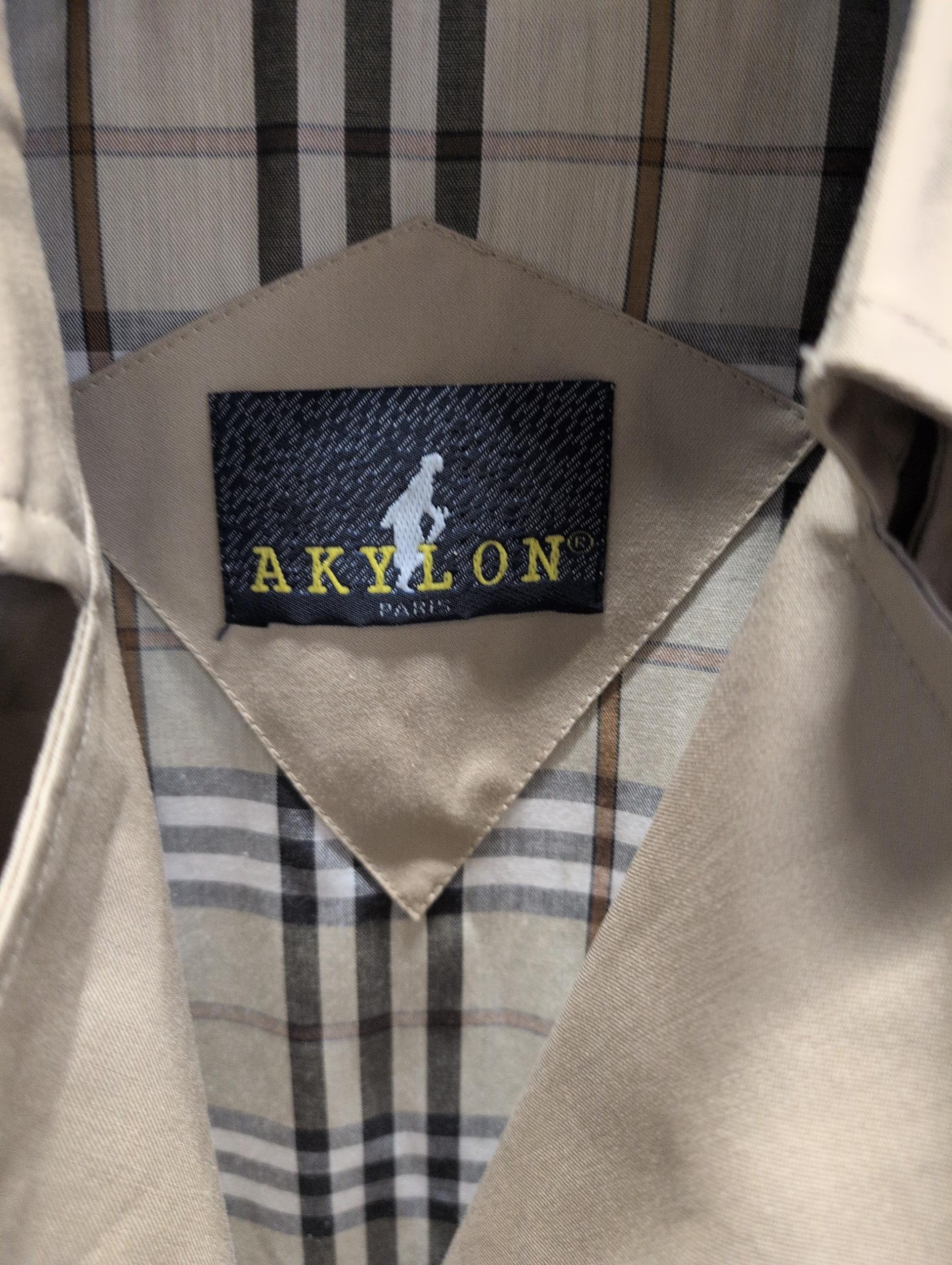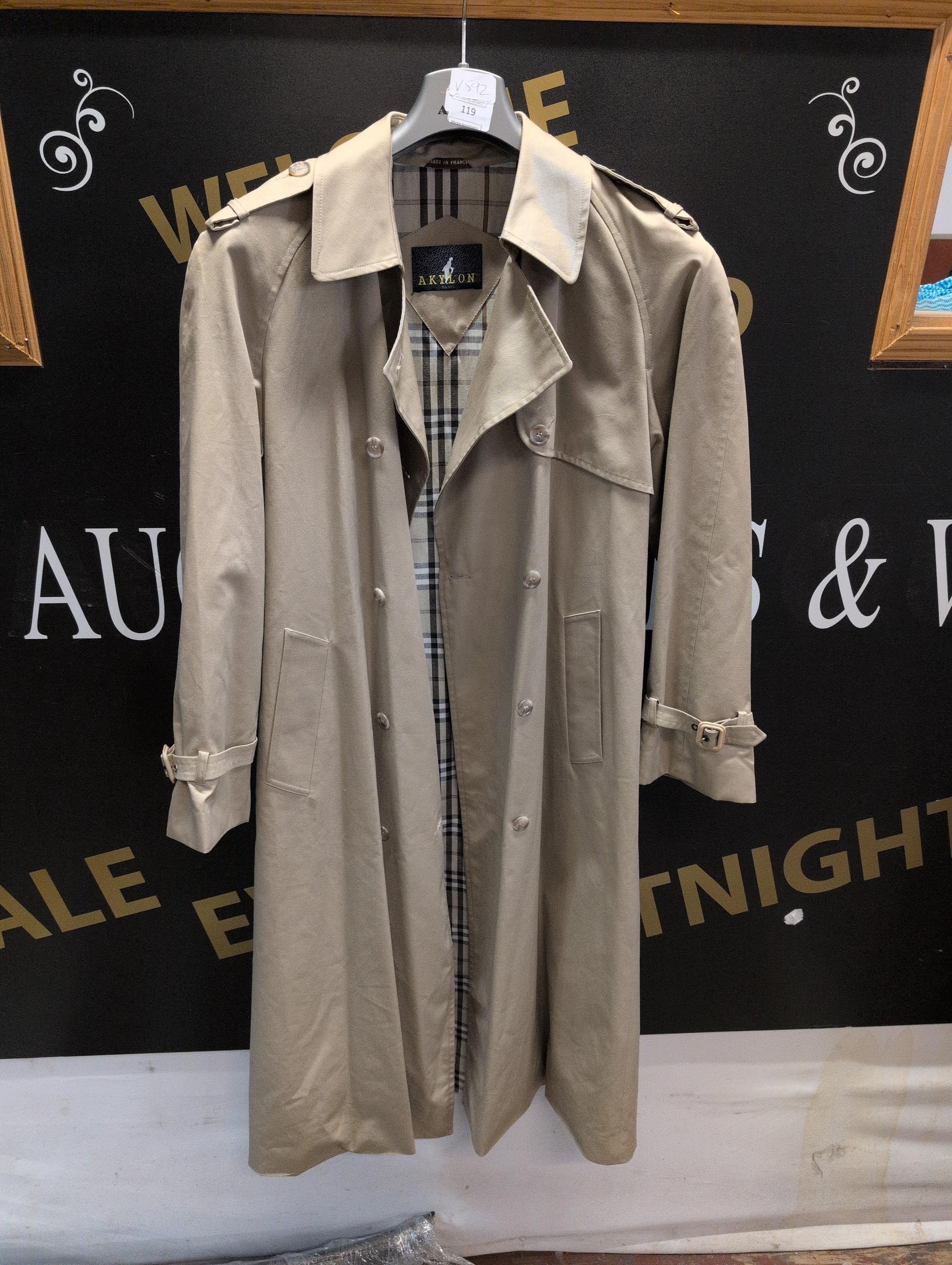 AKYLON Beige Gabardine-Style Double-Breasted Trench Coat