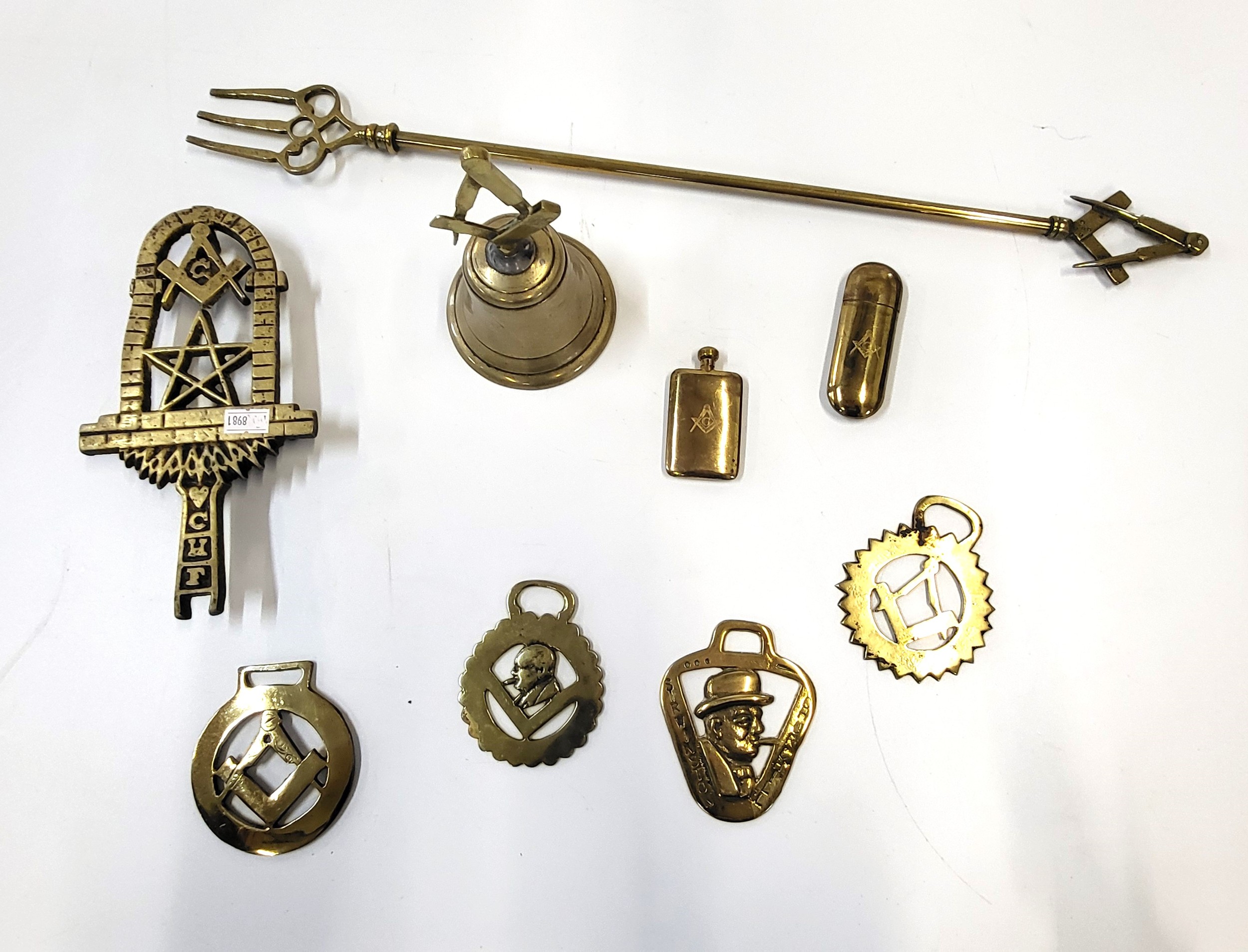 Nine items of Masonic brassware. (9)