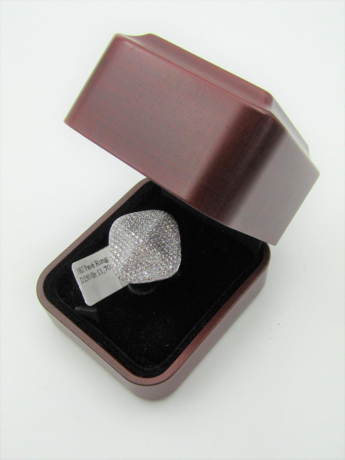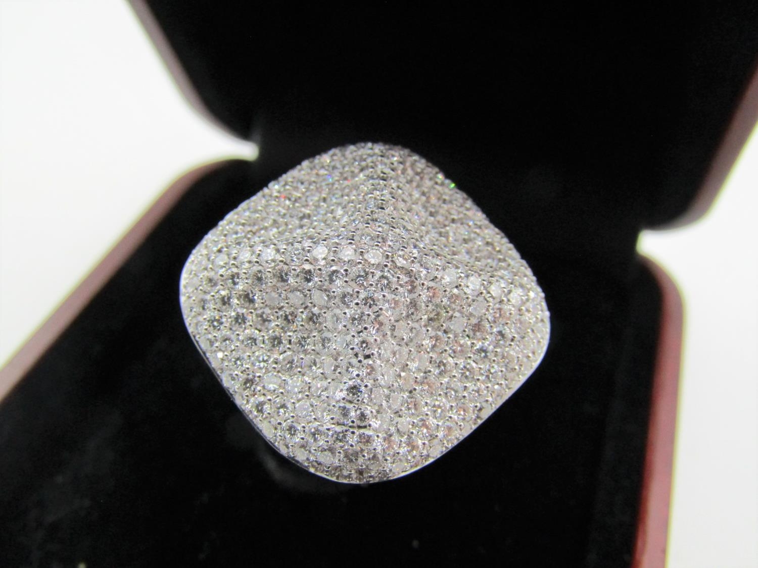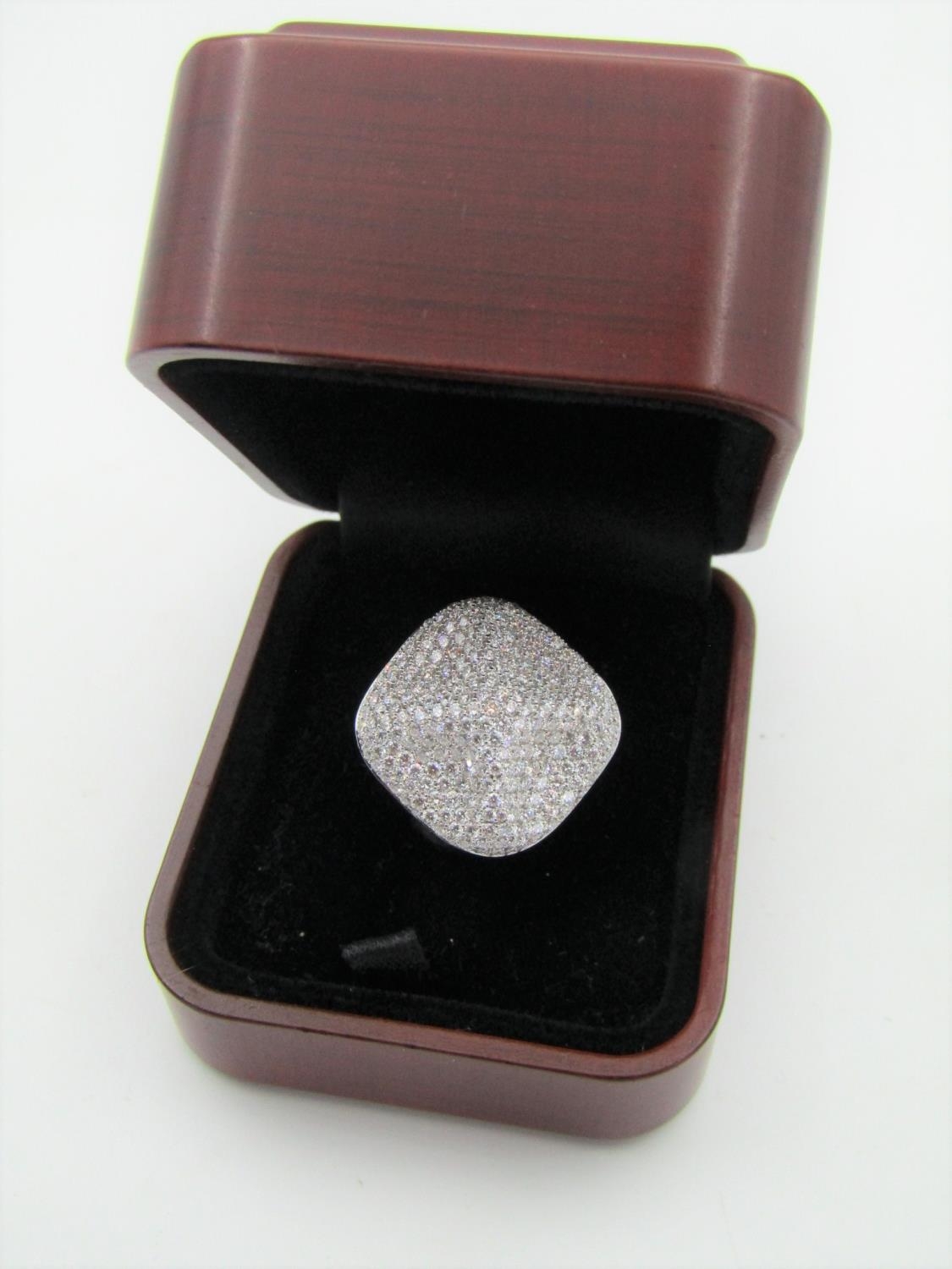 Designer Shaped Bombe Form Ladies Diamond Ring Size P Mounted on 18 Carat White Gold Diamonds Approximately 2.5 Carats Good Clarity and Colour