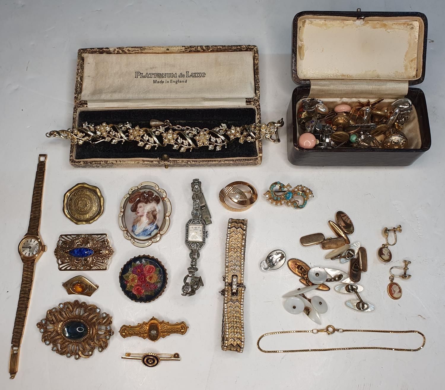 Quantity of 20thC costume jewellery to include brooches, necklaces, bracelets & cuff-links etc (Qty)