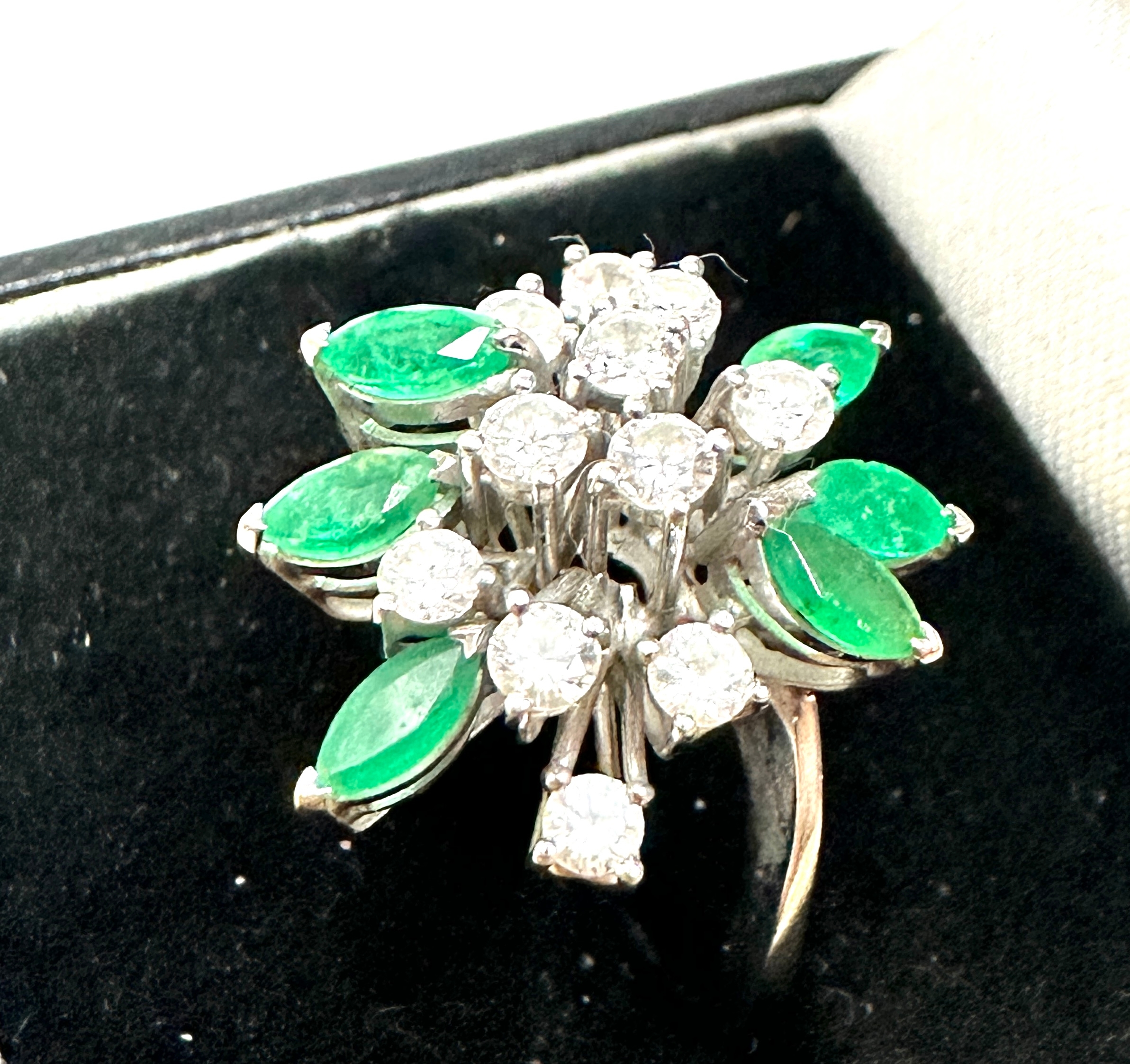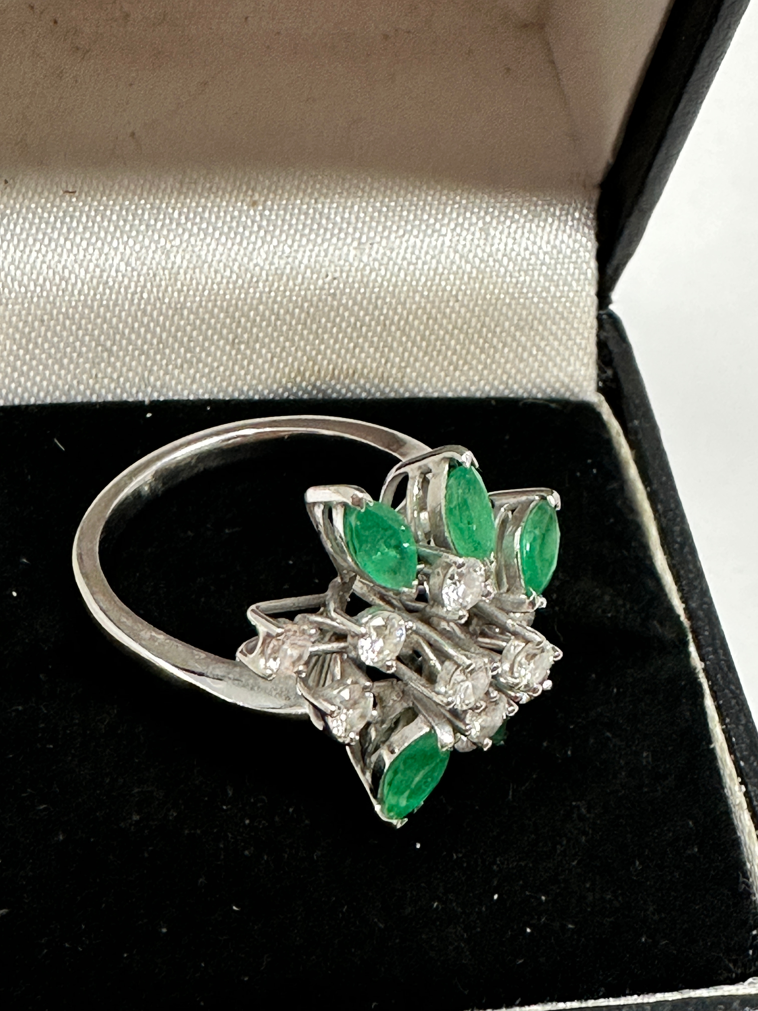 18ct white gold emerald & diamond ring ring weight 5.9g