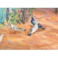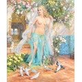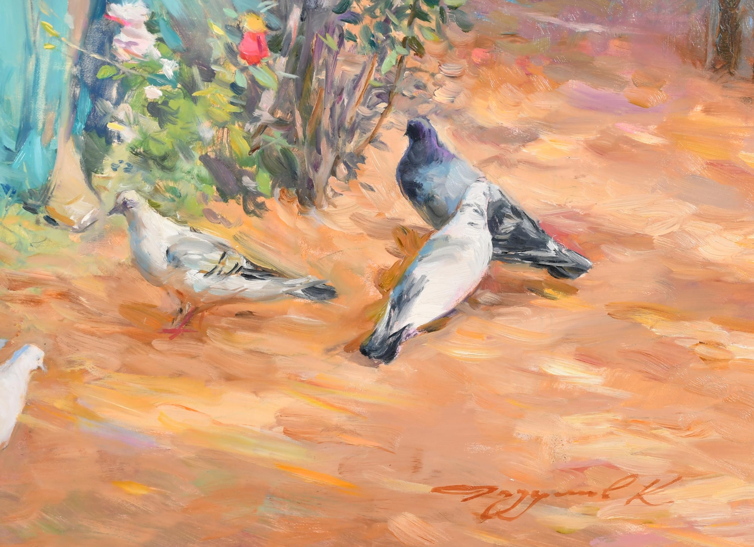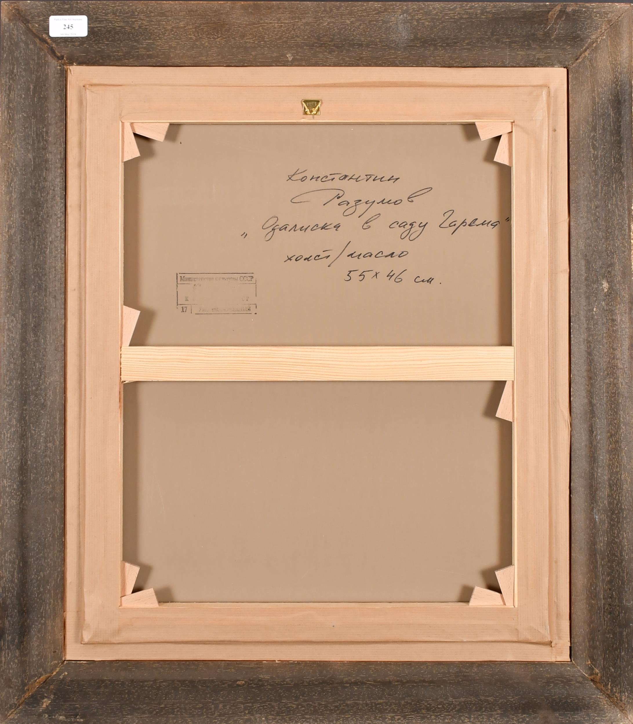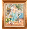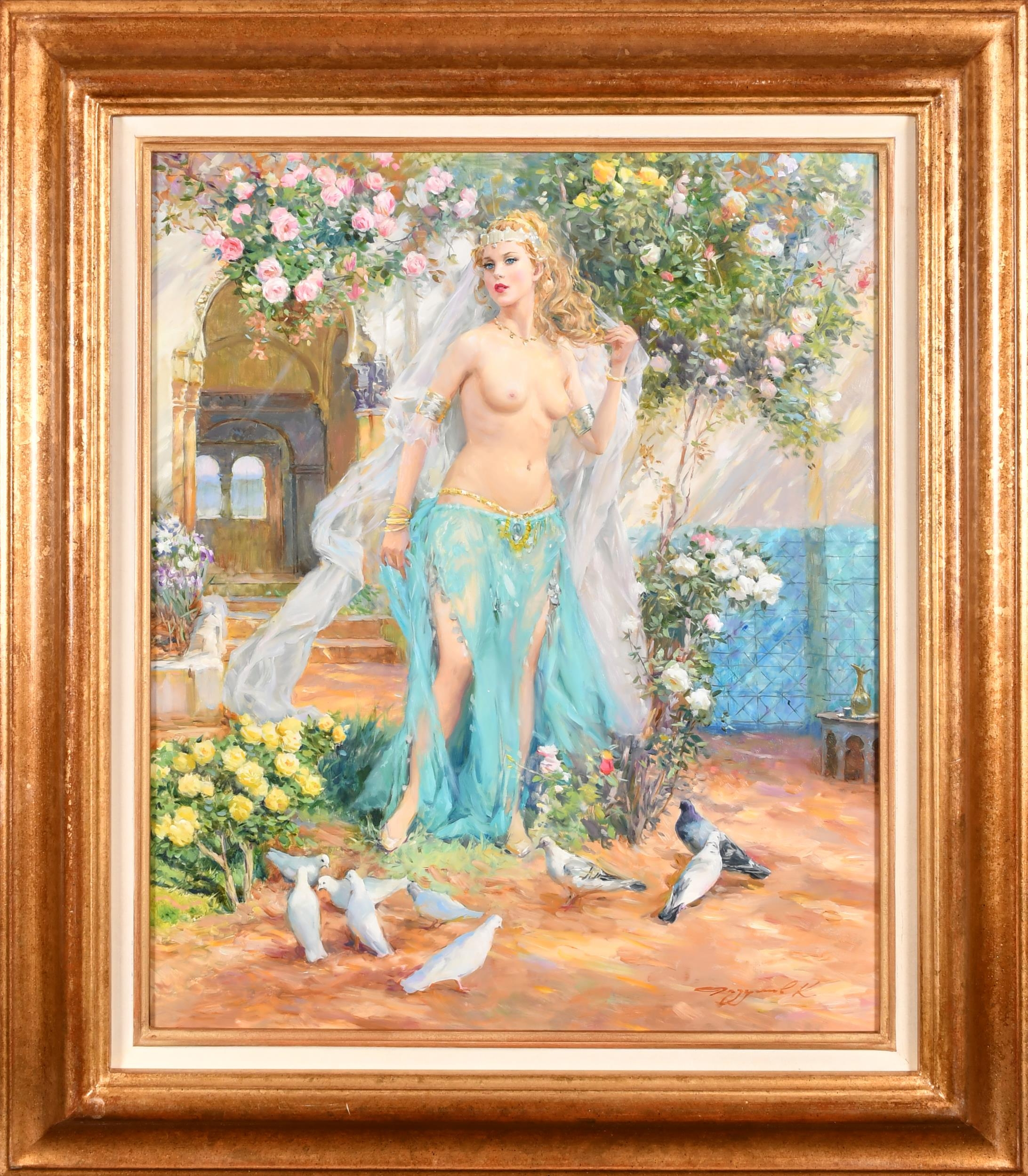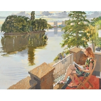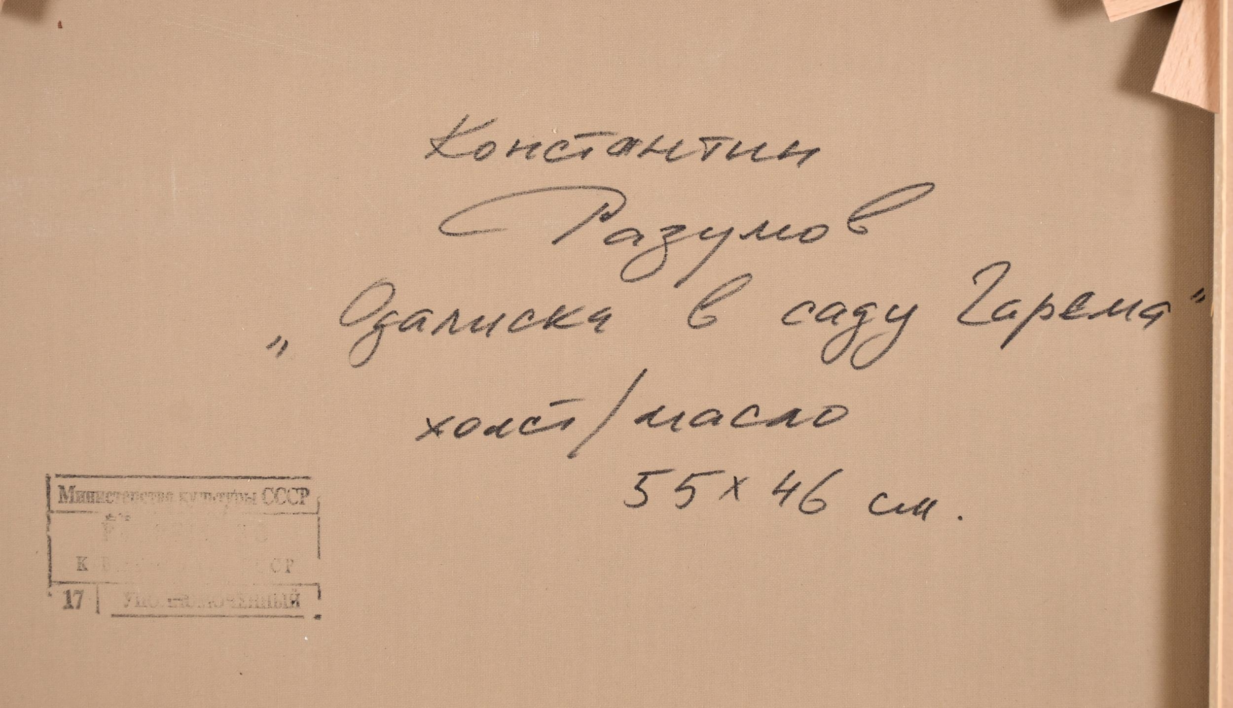 Konstantin Razumov (1974-) Russian. "On The Terrace", Oil on canvas, Signed in Cyrillic, and signed and inscribed in Cyrillic verso, 21.75" x 18.25" (55.2 x 46.3cm)