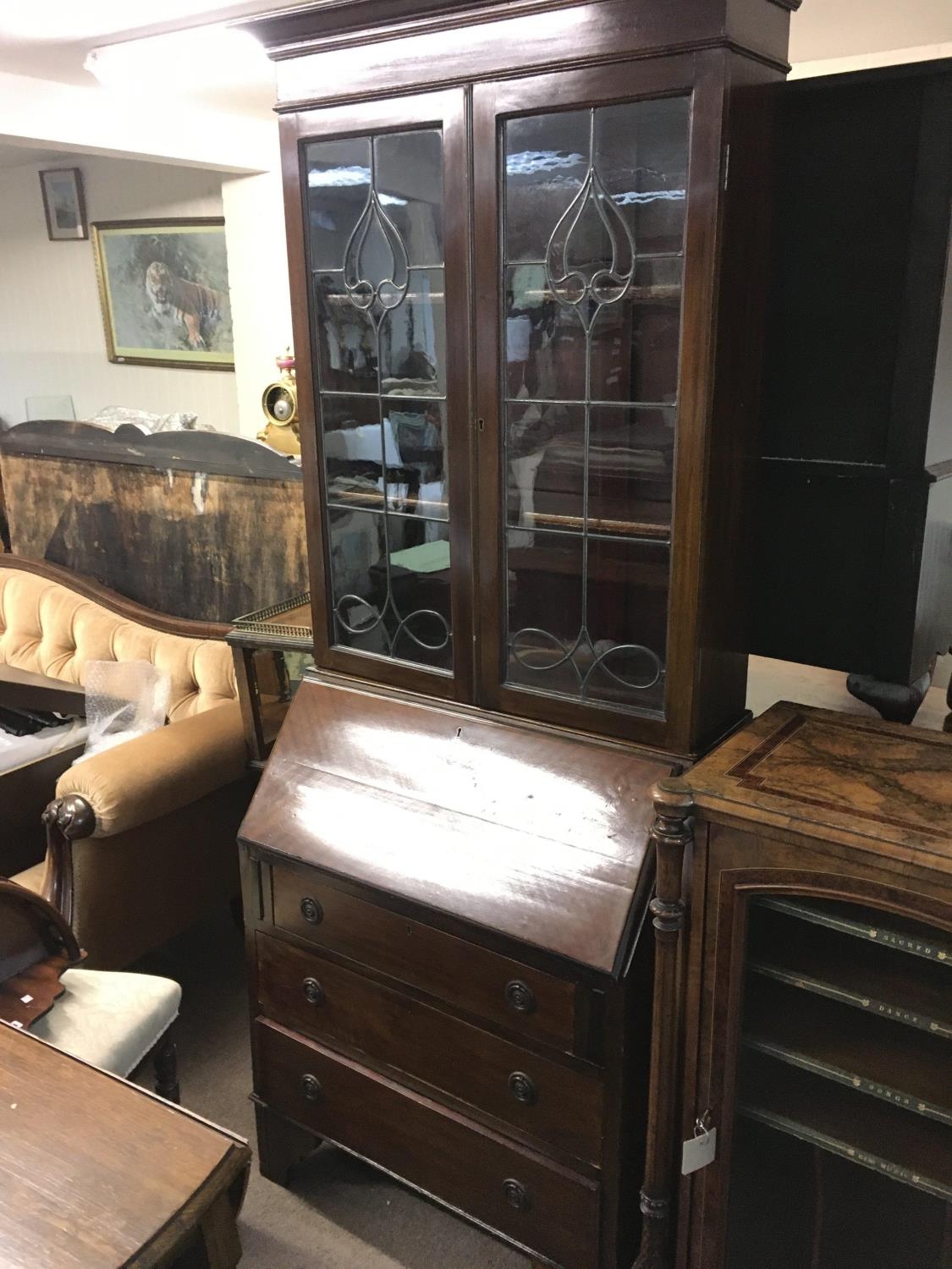 A mahogany Bureau bookcase , 74cm wide, 196cm tall.- NO RESERVE