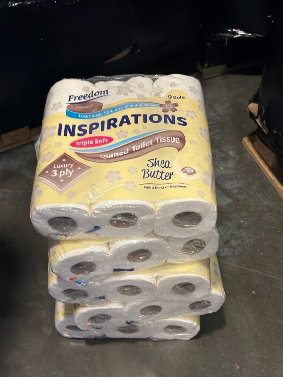 X5 PACKS OF 9 FREEDOM INSPIRATIONS SHEA BUTTER TOILET ROLLS