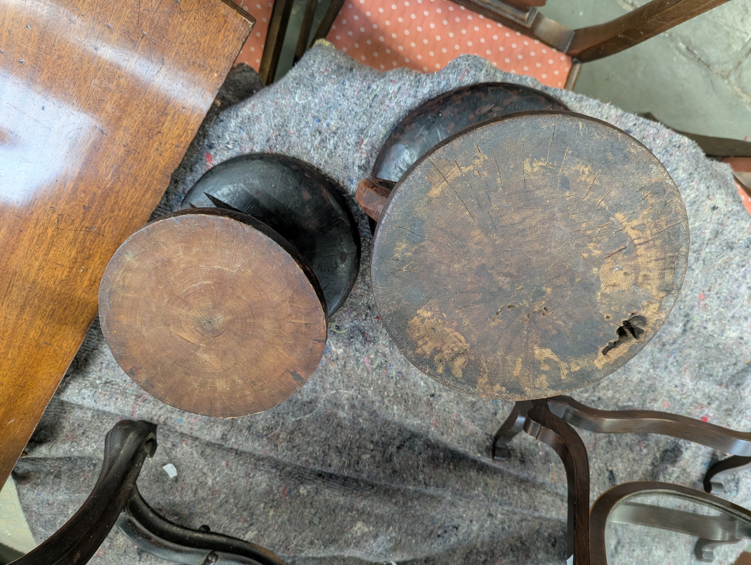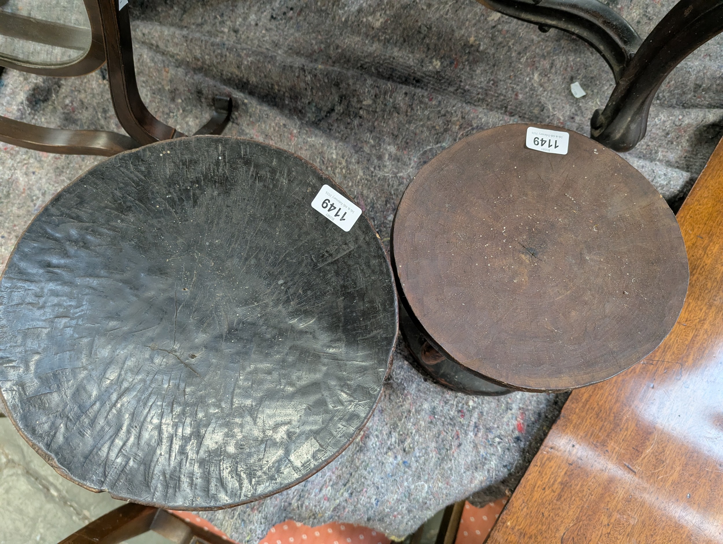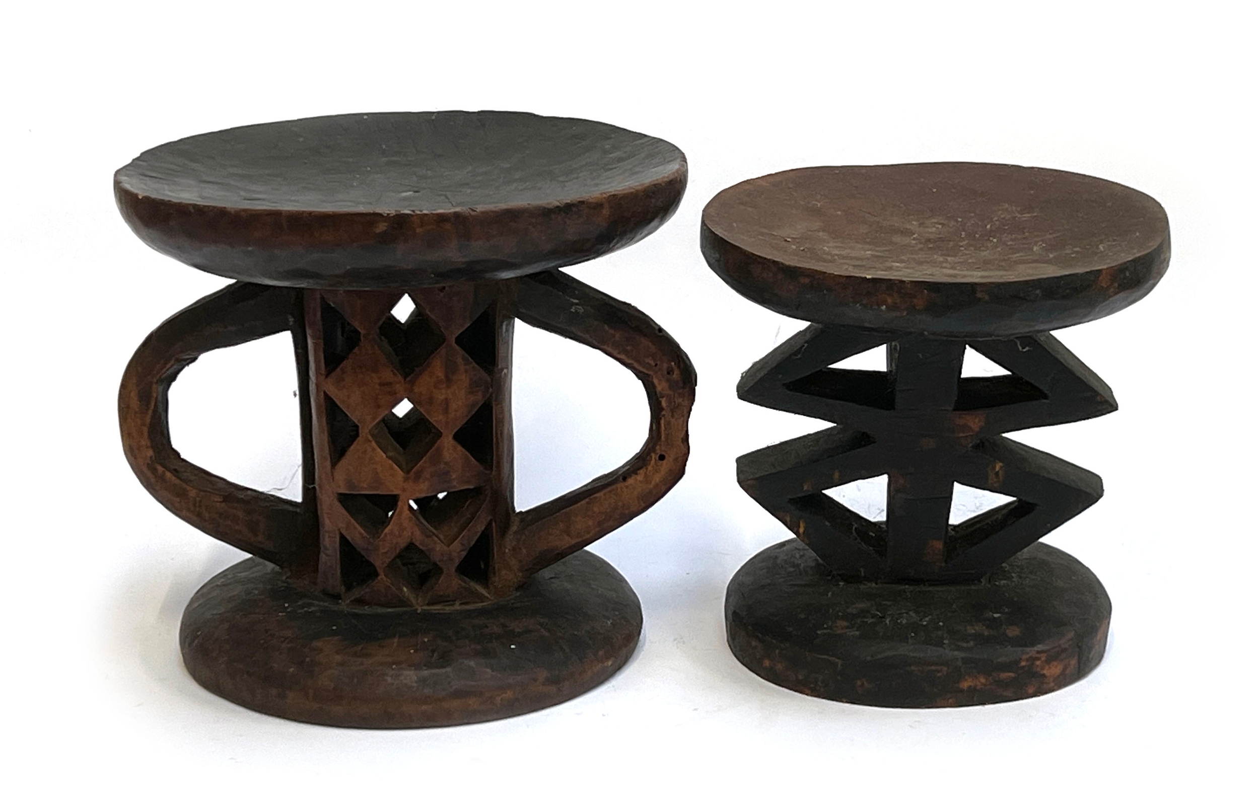 Two carved African tribal stools, possibly Tonga tribe, 23cmH and 26.5cmH