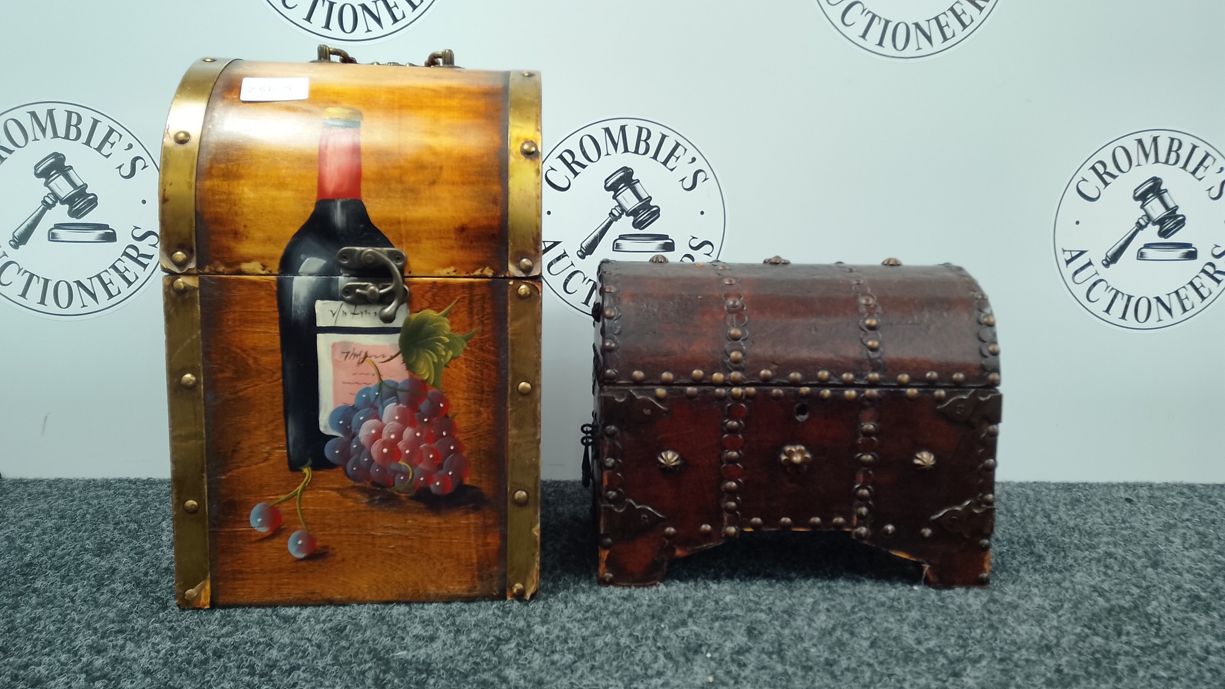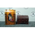 Wooden Wine Bottle Box & Leather Clad Studded Carriage Trunk Chest