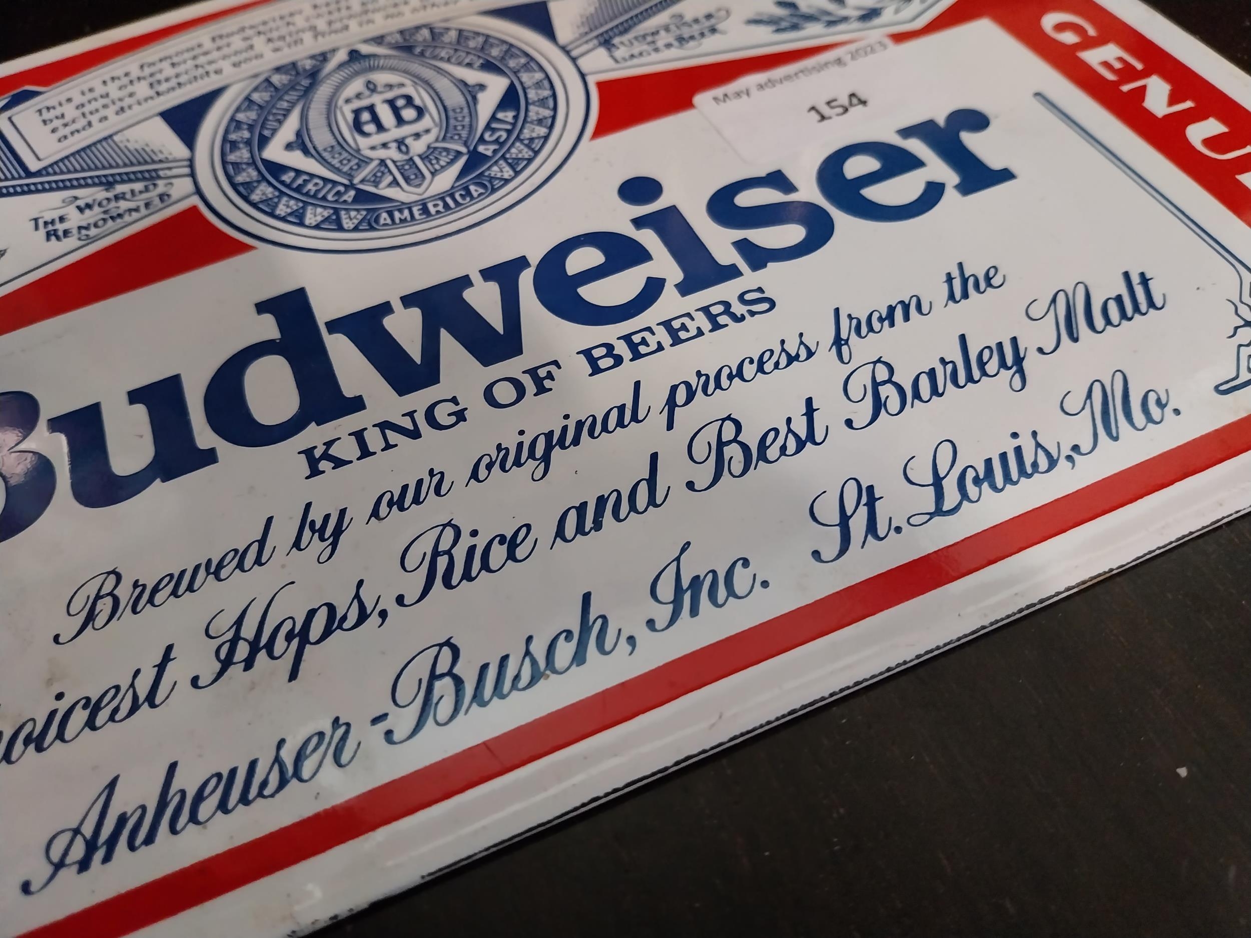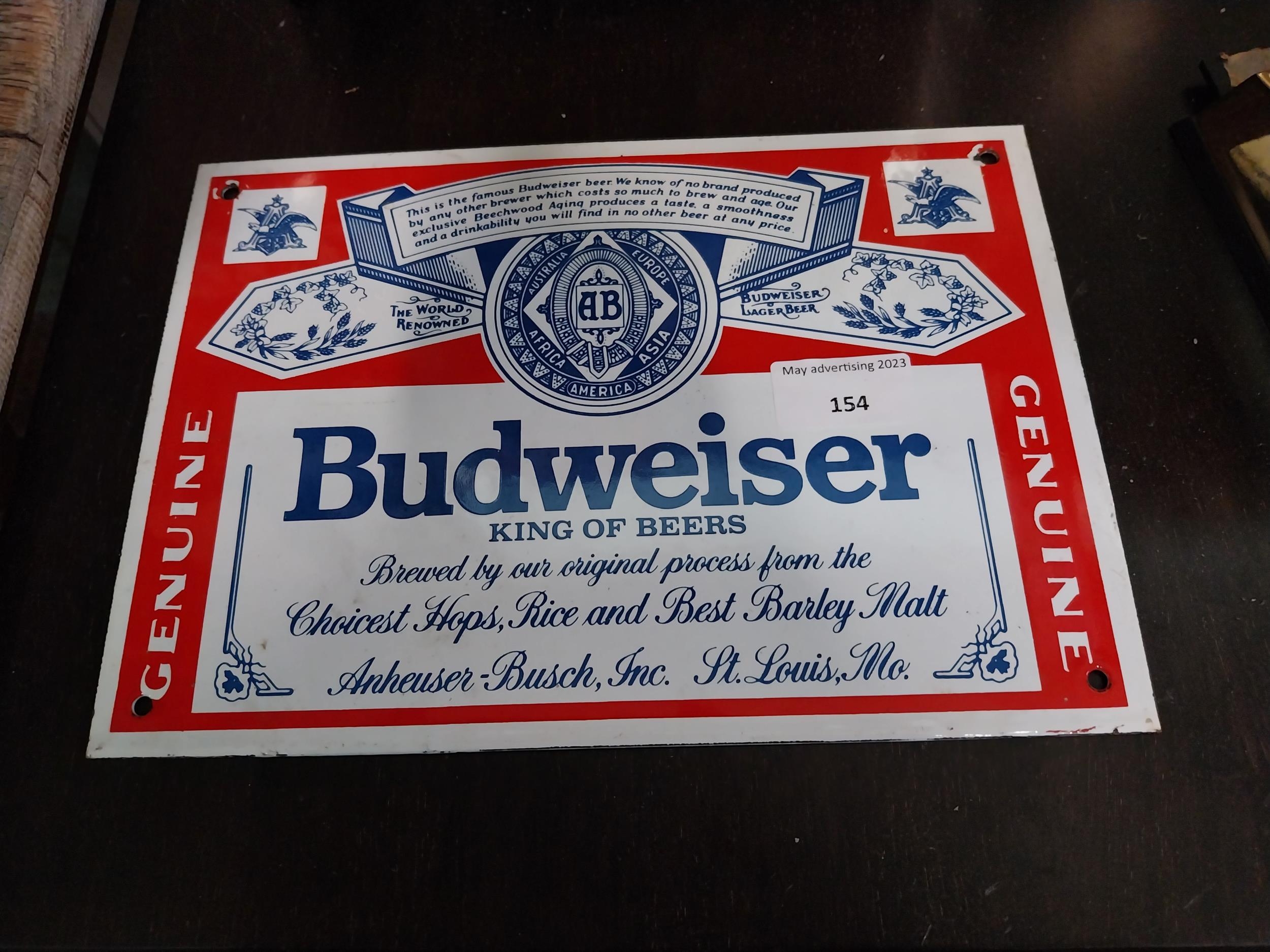Budweiser King of Beers enamel advertising sign. {29 cm H x 26 cm W}.