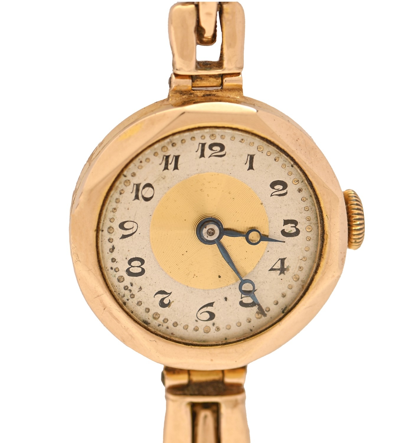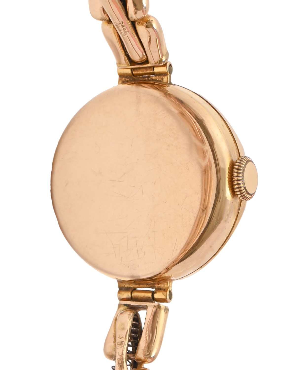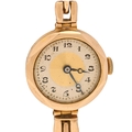 A 9ct gold lady's wristwatch, 24mm diam, Chester 1931, on expanding gold bracelet, marked 9ct
