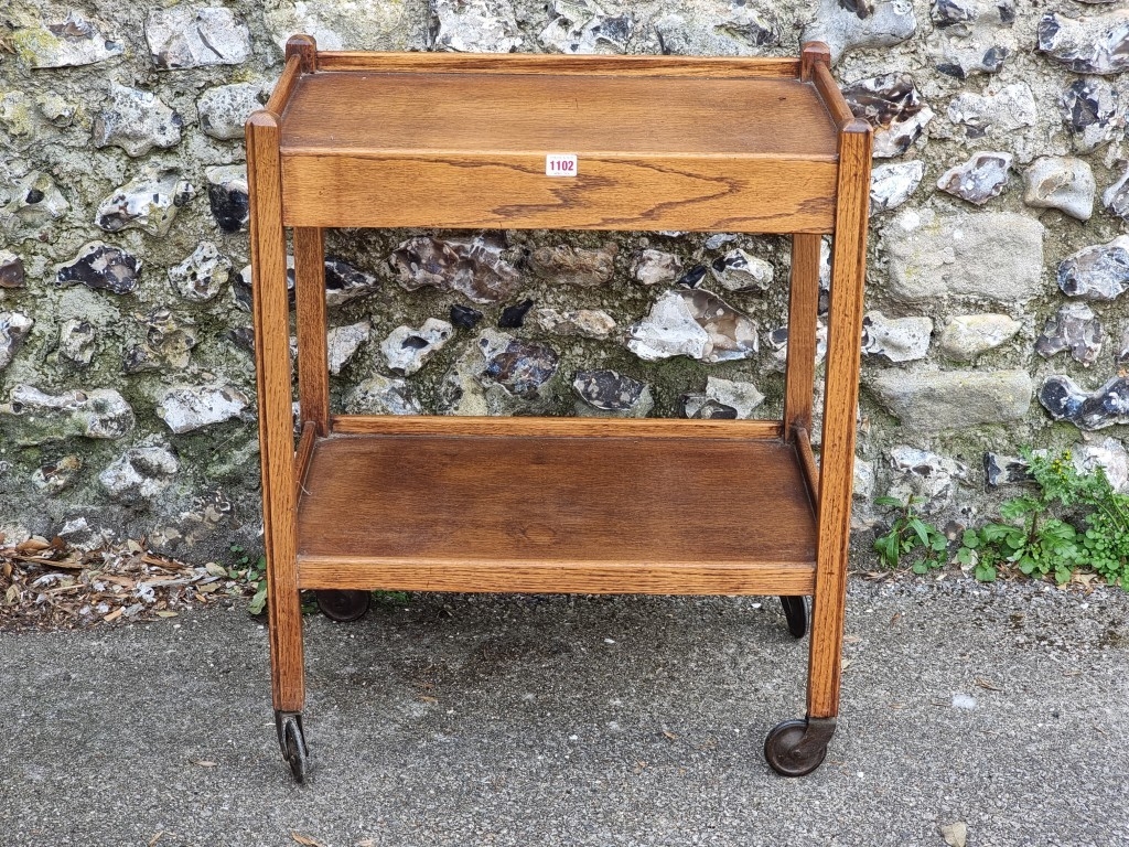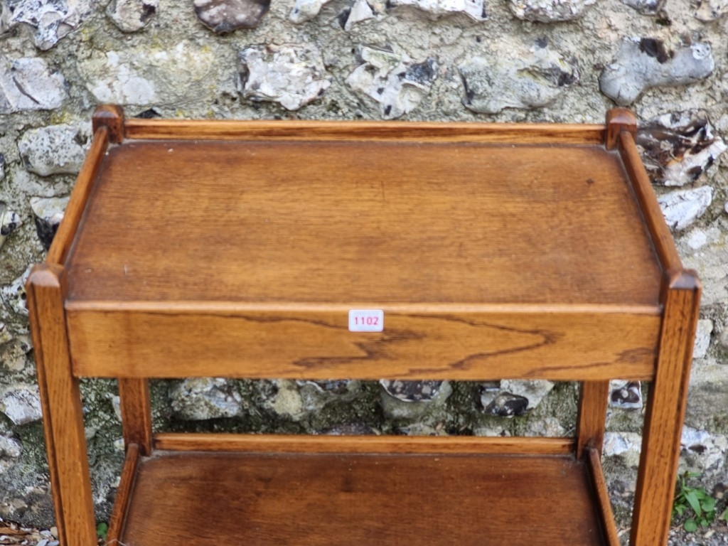 A 1920s oak tea trolley, with detachable tray to frieze, 64cm wide.