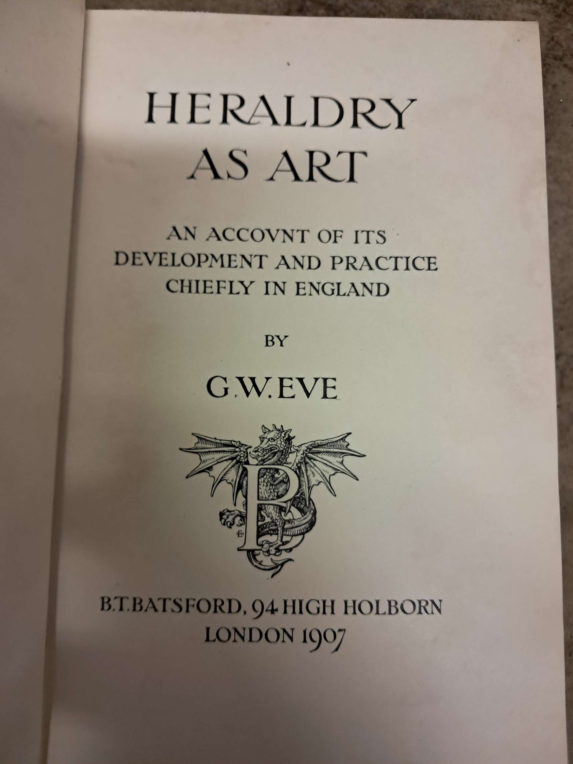 G.W. Eve "Heraldry as Art" Great Britian and Ireland" 2 Volumes Cole "Heraldry Decoration and Floral Forms" G.W. Eve "Heraldry as Art"