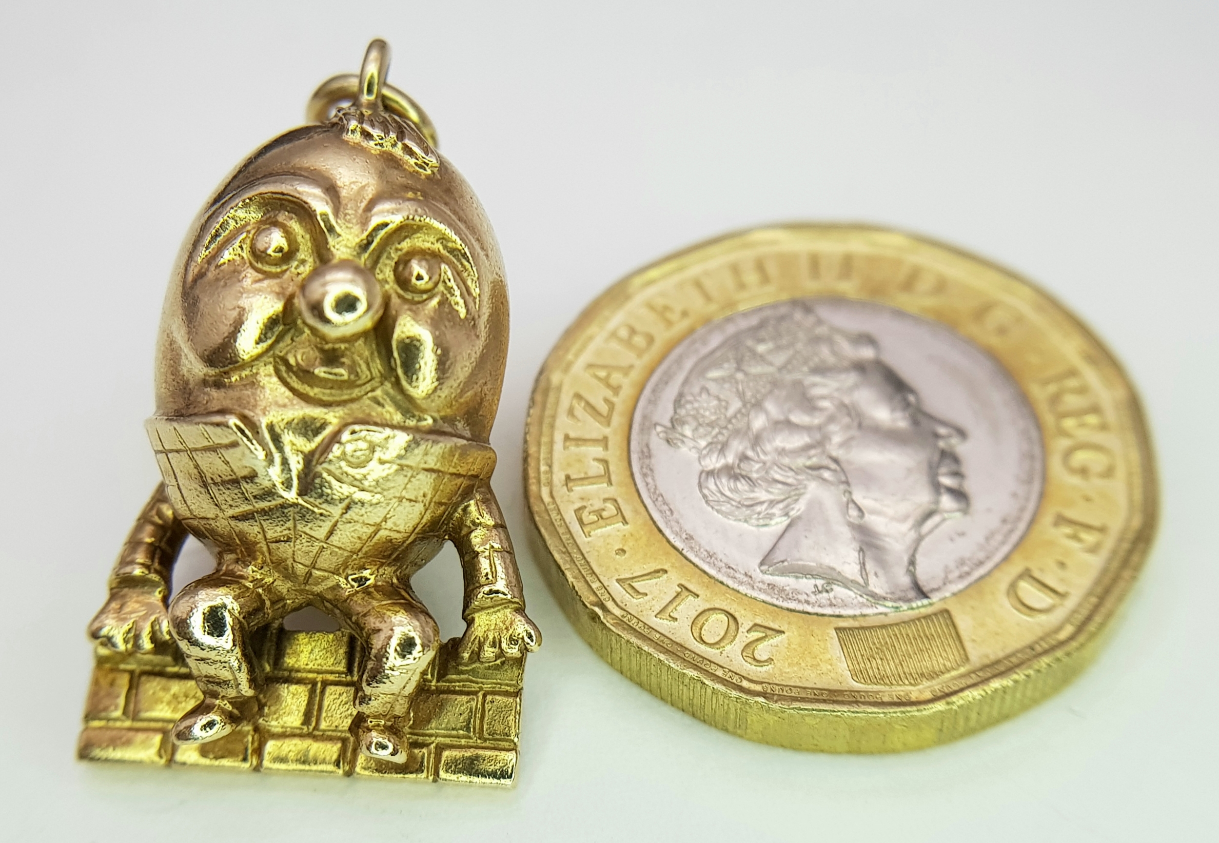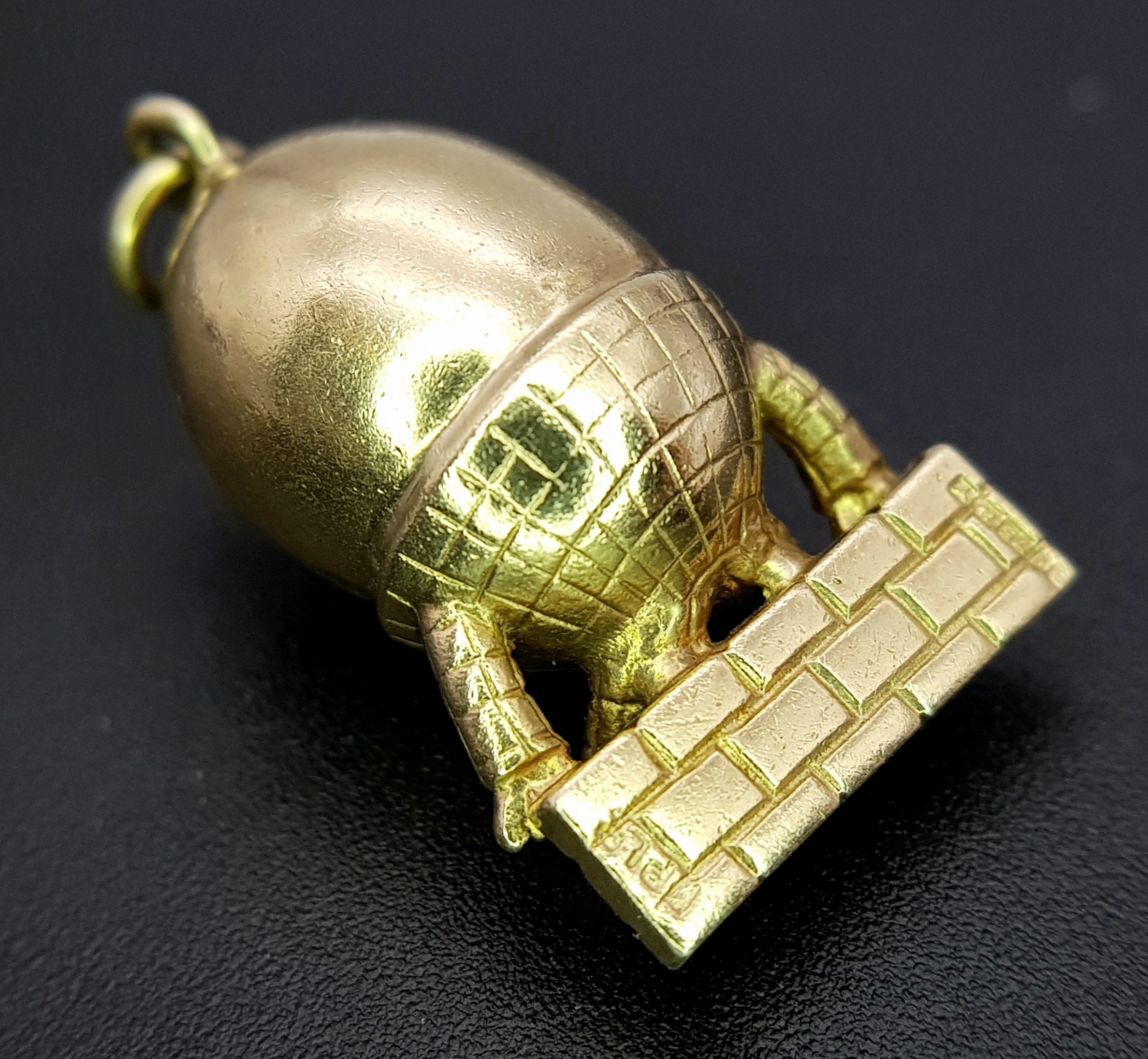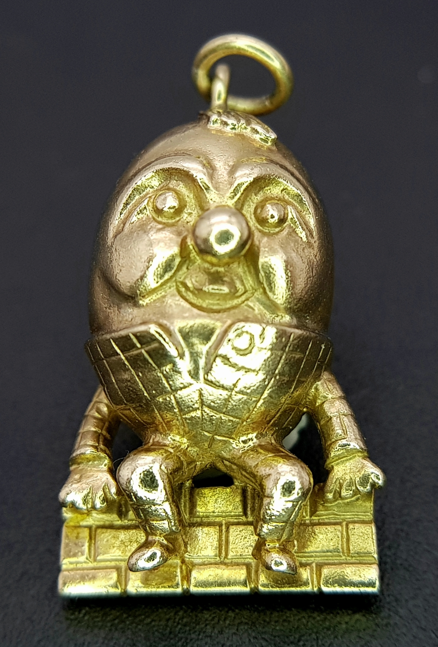 A 9K YELLOW GOLD HUMPTY DUMPTY SITTING ON A WALL CHARM / PENDANT 6.3G. Ref: TAN 7010