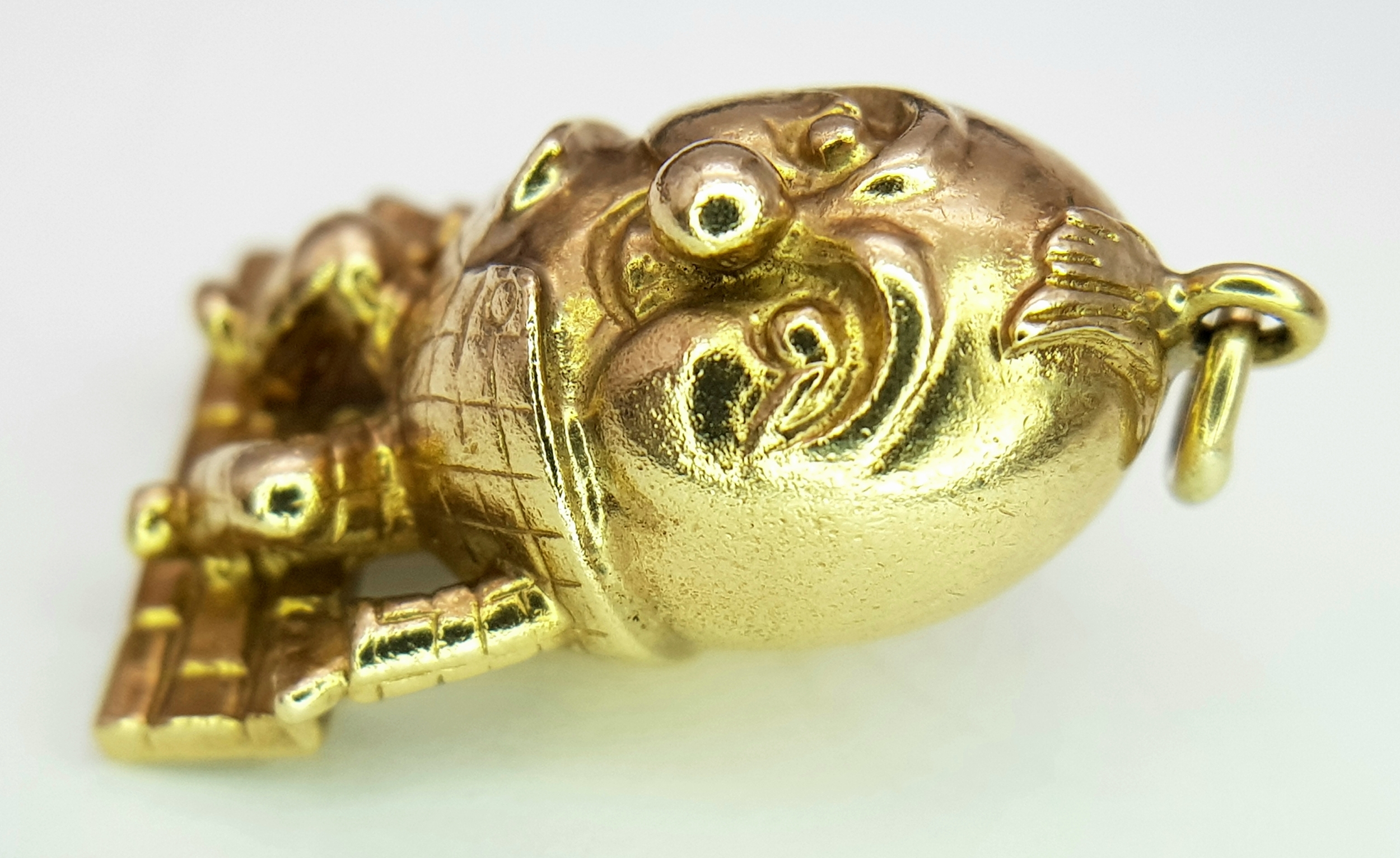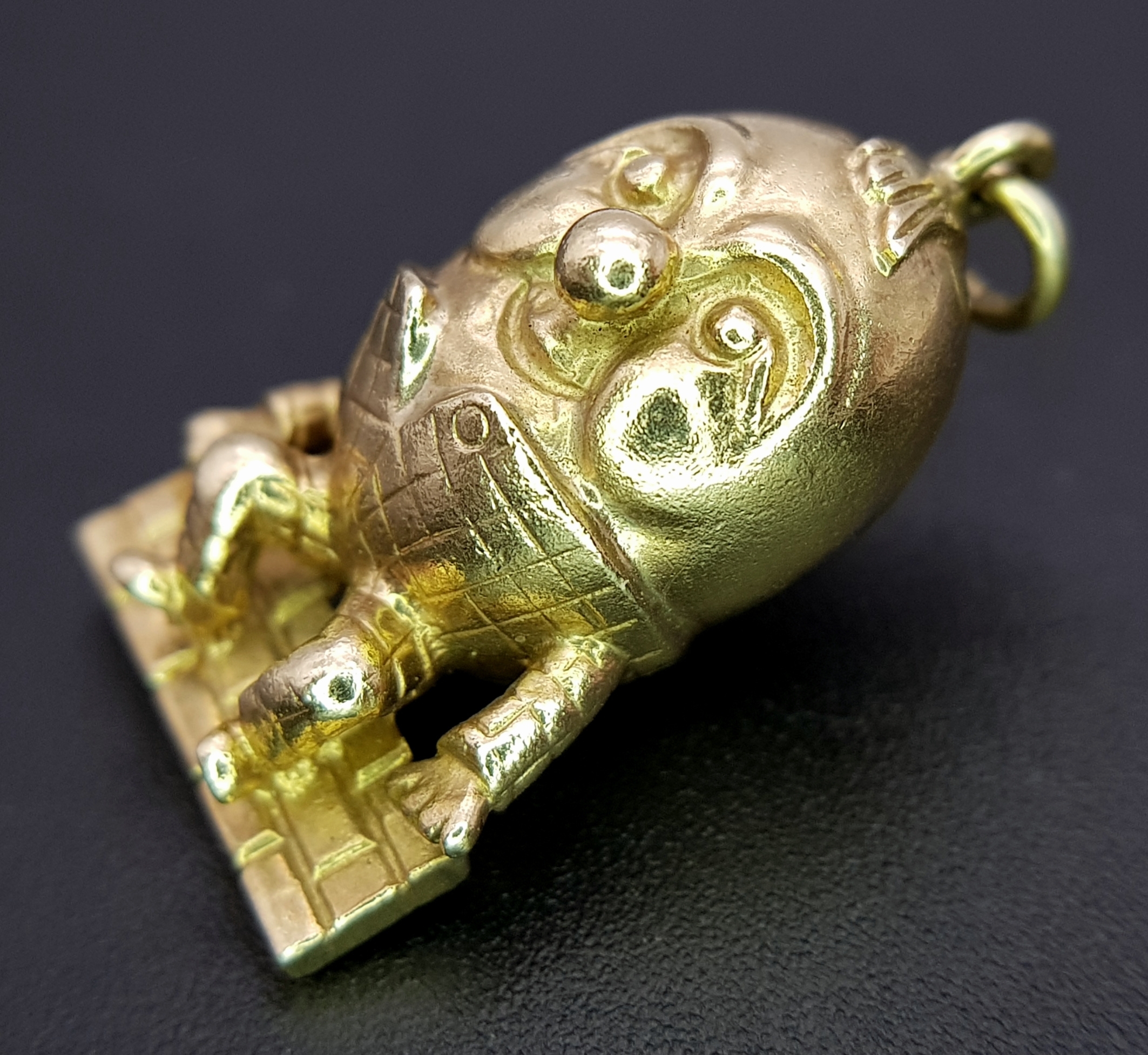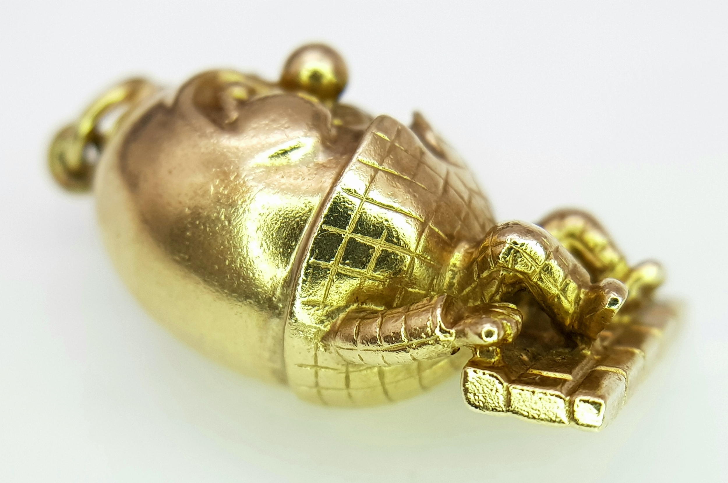 A 9K YELLOW GOLD HUMPTY DUMPTY SITTING ON A WALL CHARM / PENDANT 6.3G. Ref: TAN 7010