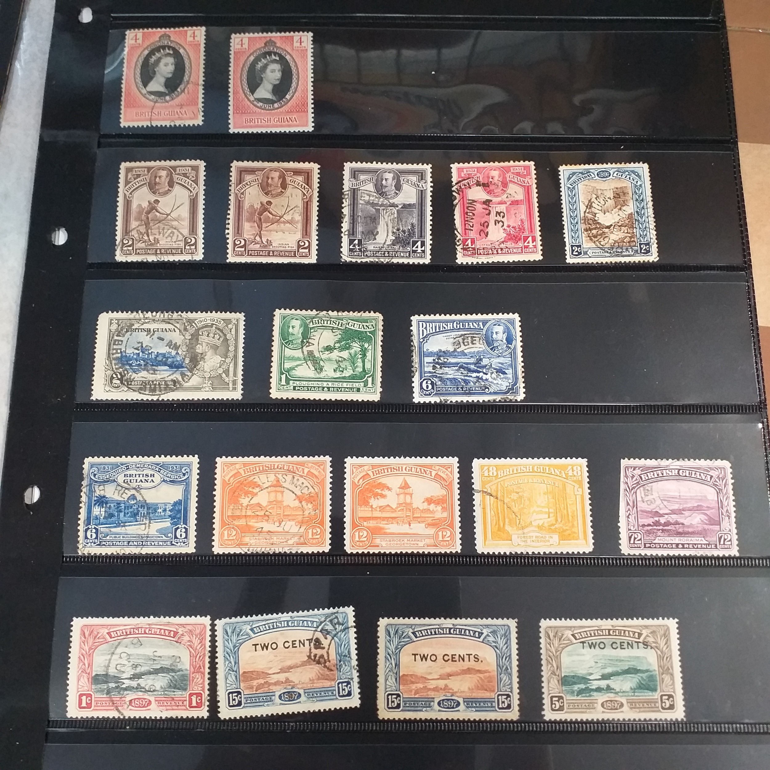 British Guiana small collection from early, mint and used, on 5 stock cards/album pages.