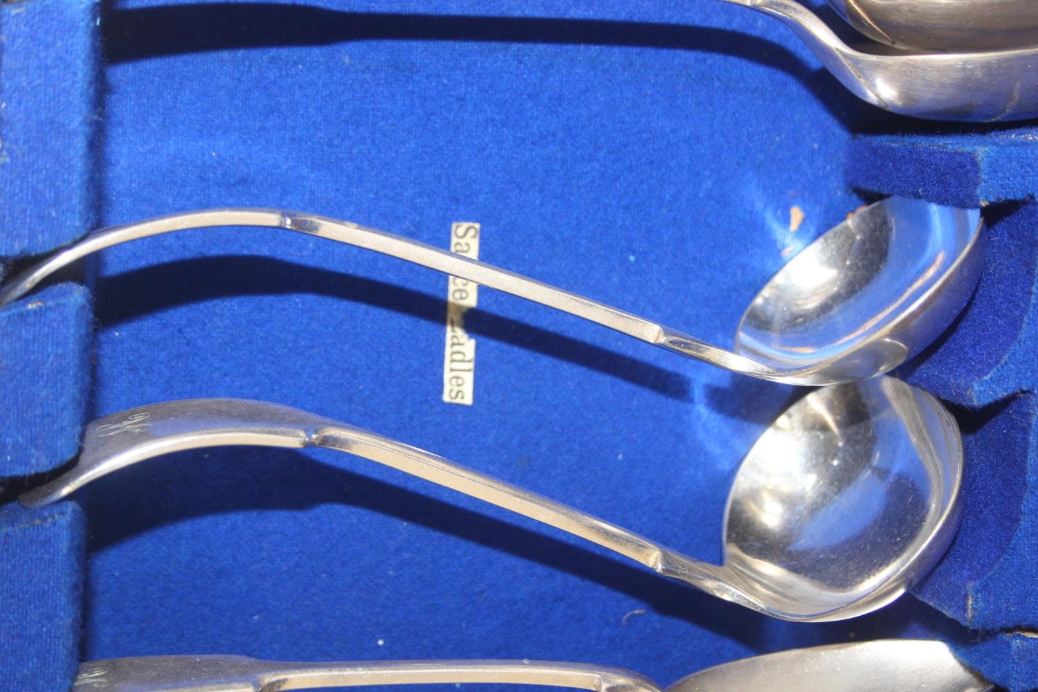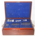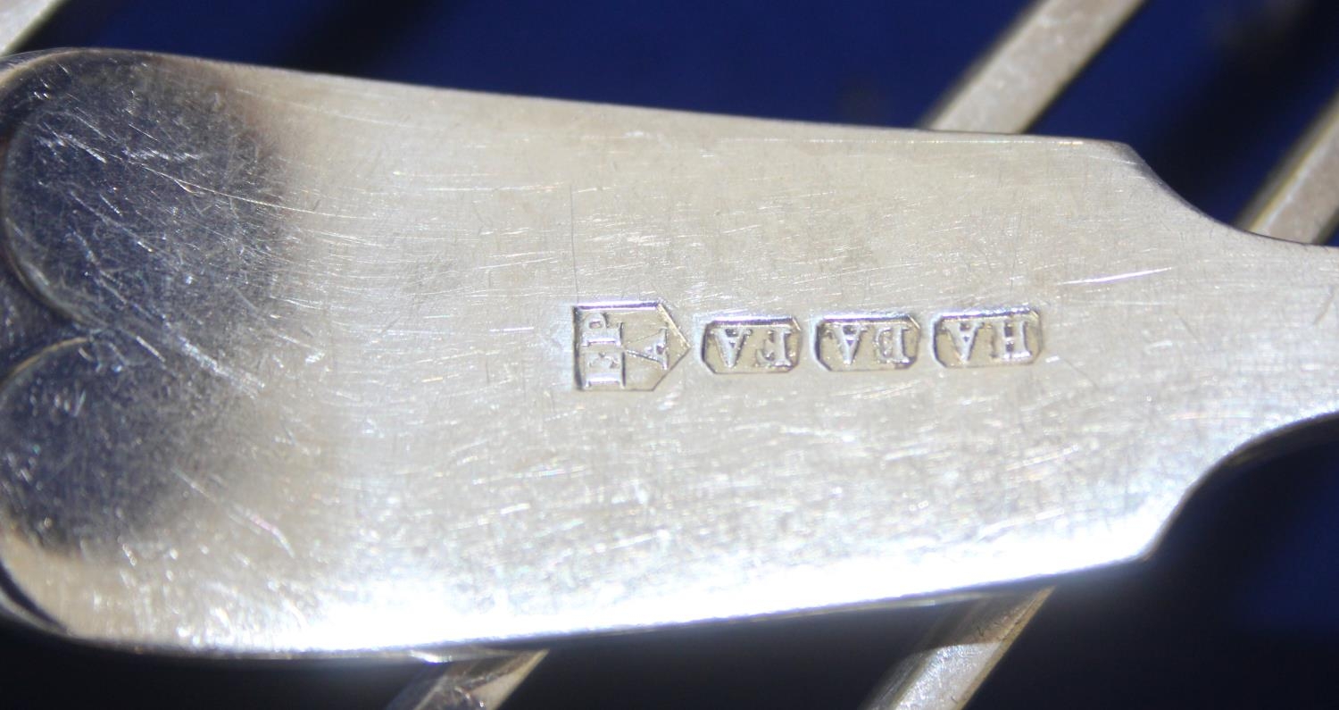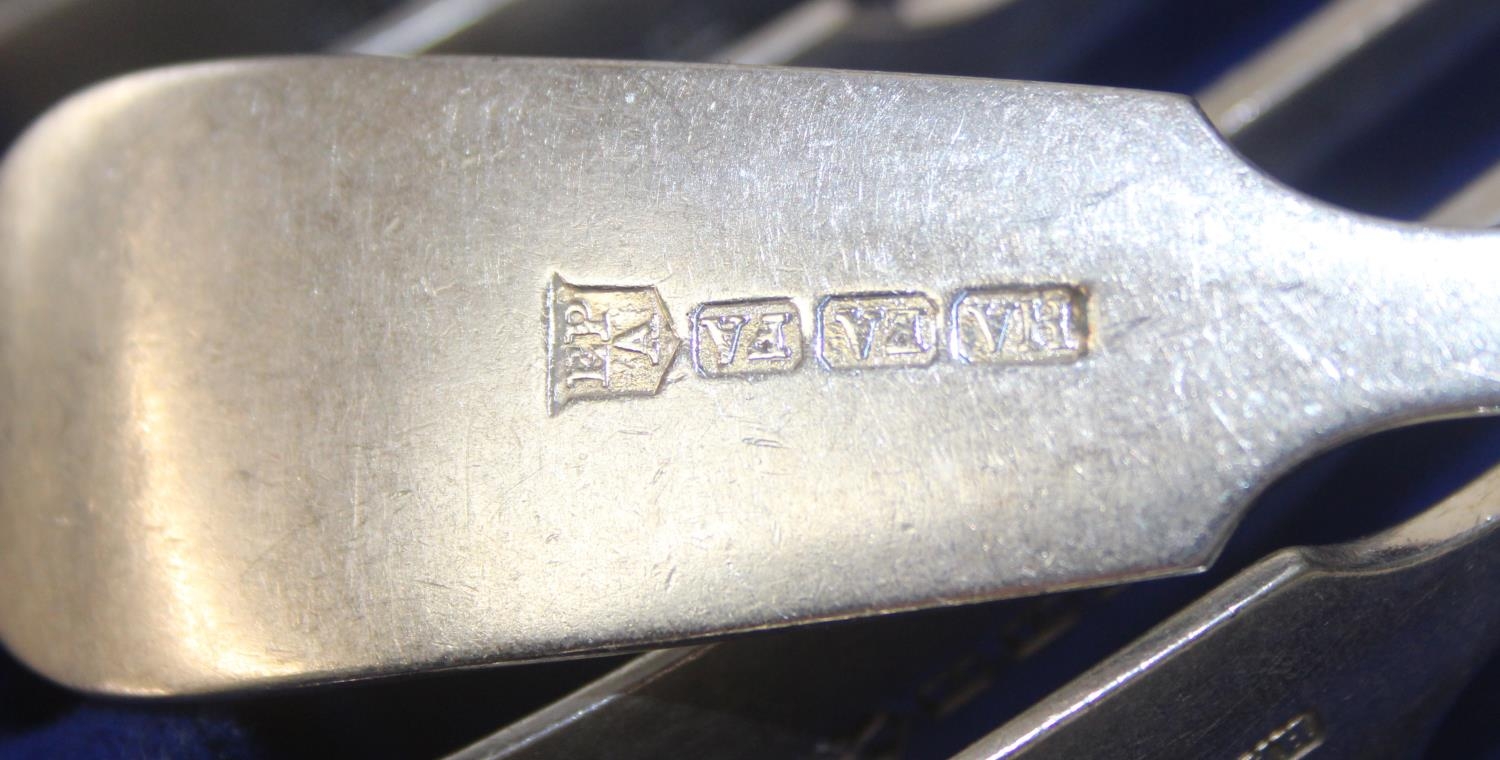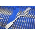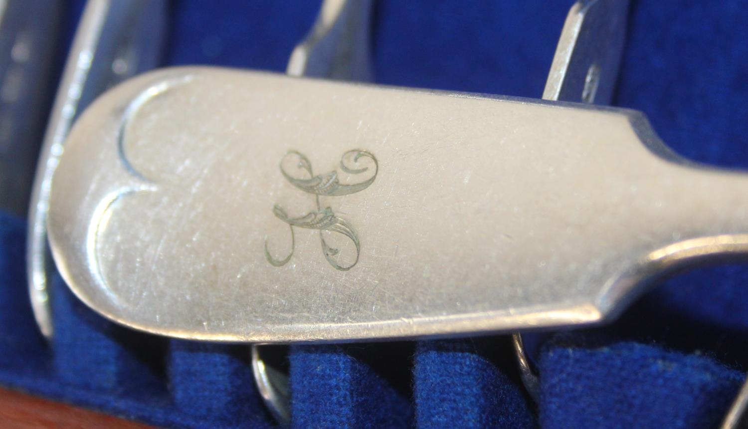 An antique silver plated cutlery set, the majority of a 12 person setting, with a few pieces missing and some replacements, the majority of the set made by the Atkin Brothers and retailed by Durrant of London