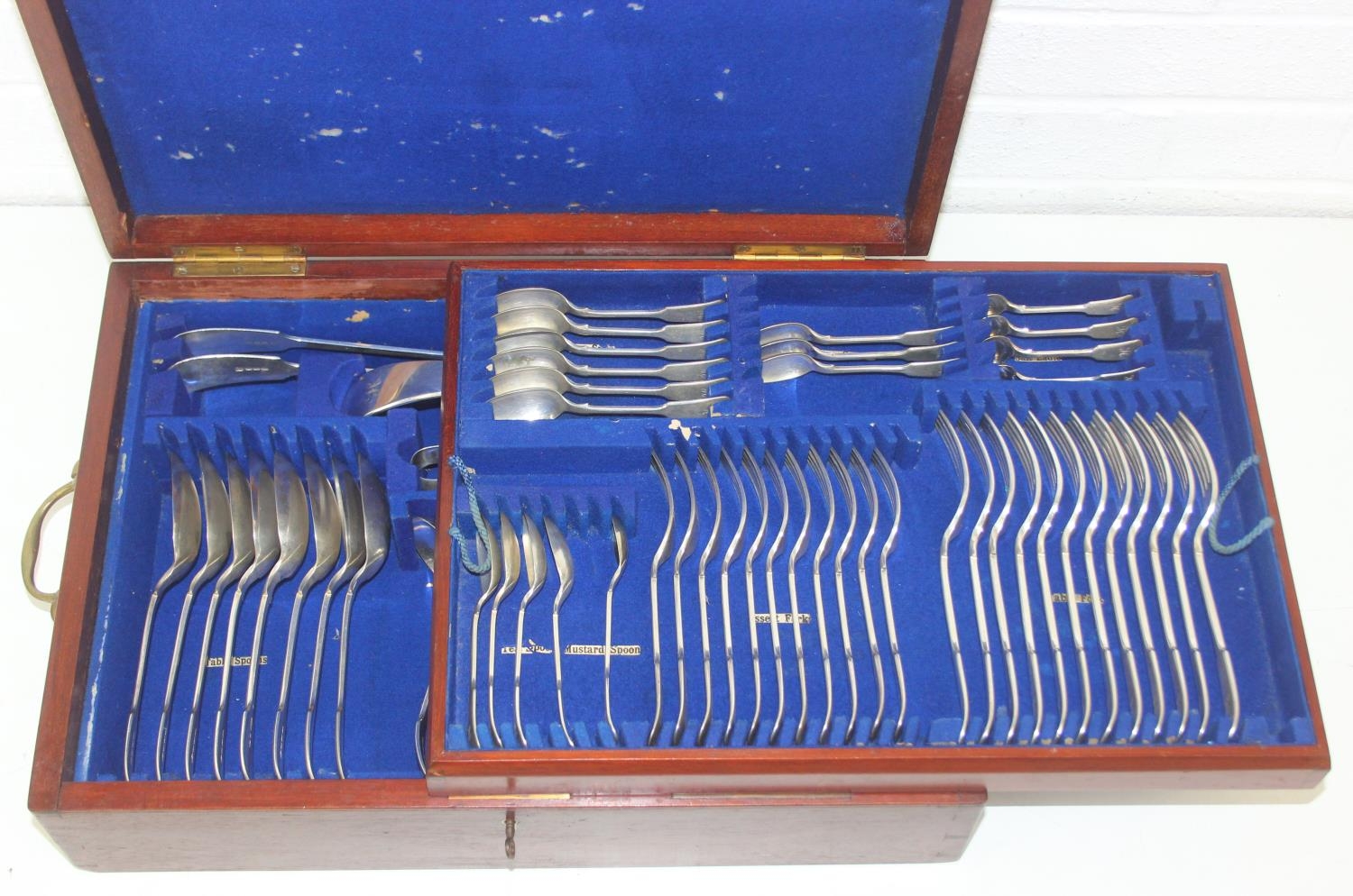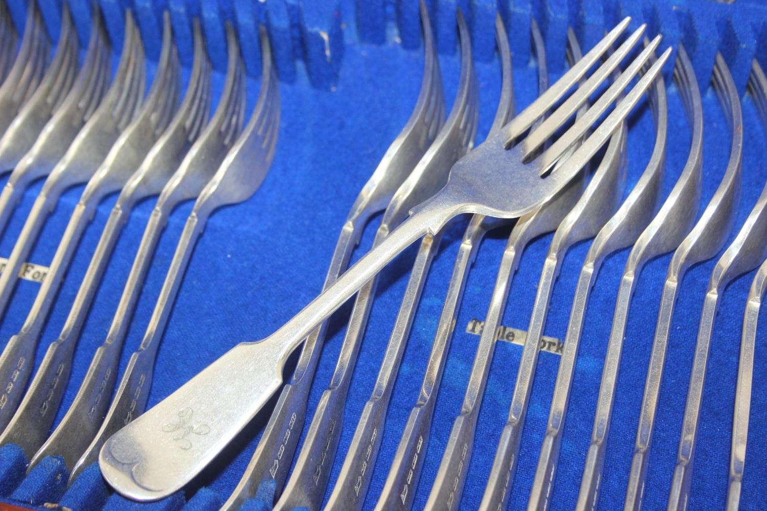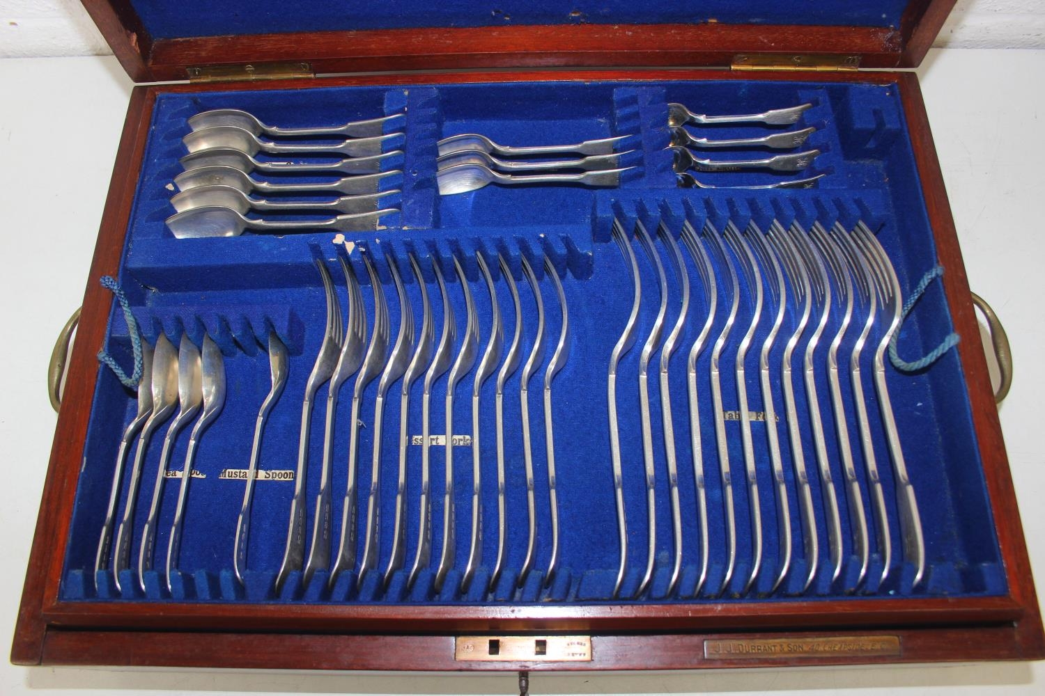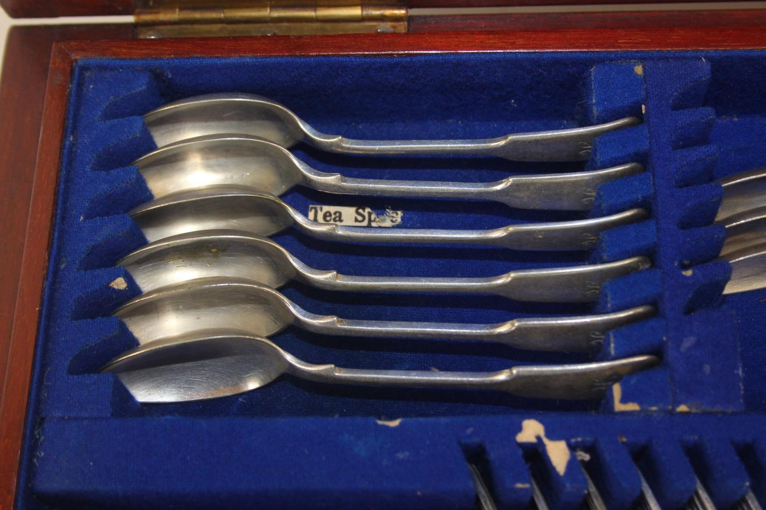 An antique silver plated cutlery set, the majority of a 12 person setting, with a few pieces missing and some replacements, the majority of the set made by the Atkin Brothers and retailed by Durrant of London