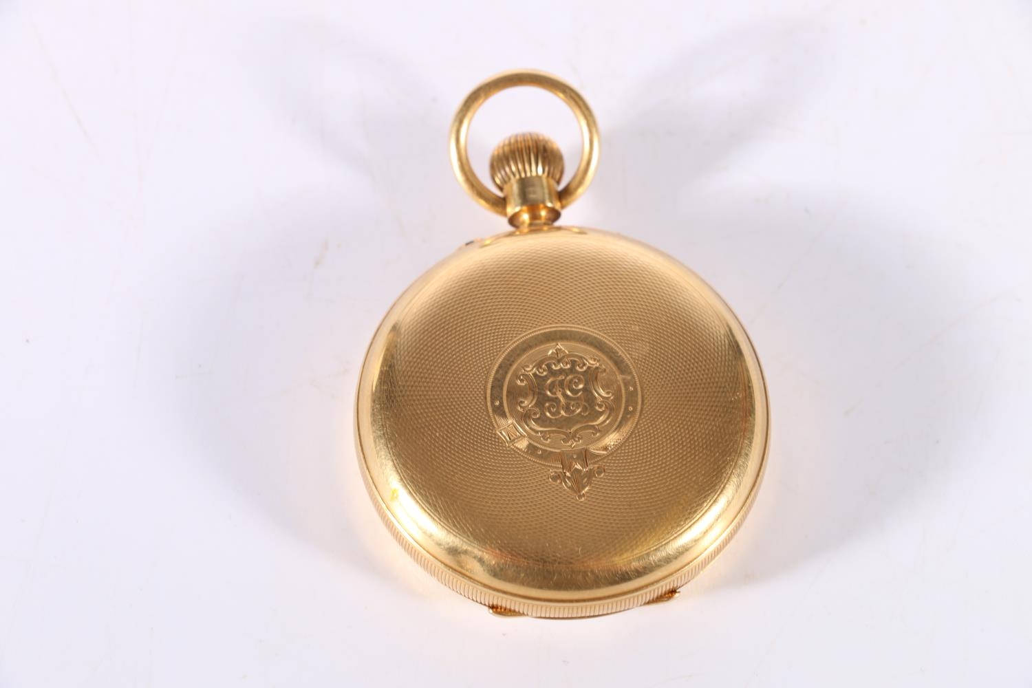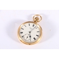 18ct gold cased open face keyless pocket watch by Benson of London, the white enamel dial with Roman Numerals and subsidiary seconds dial, 83.5g gross