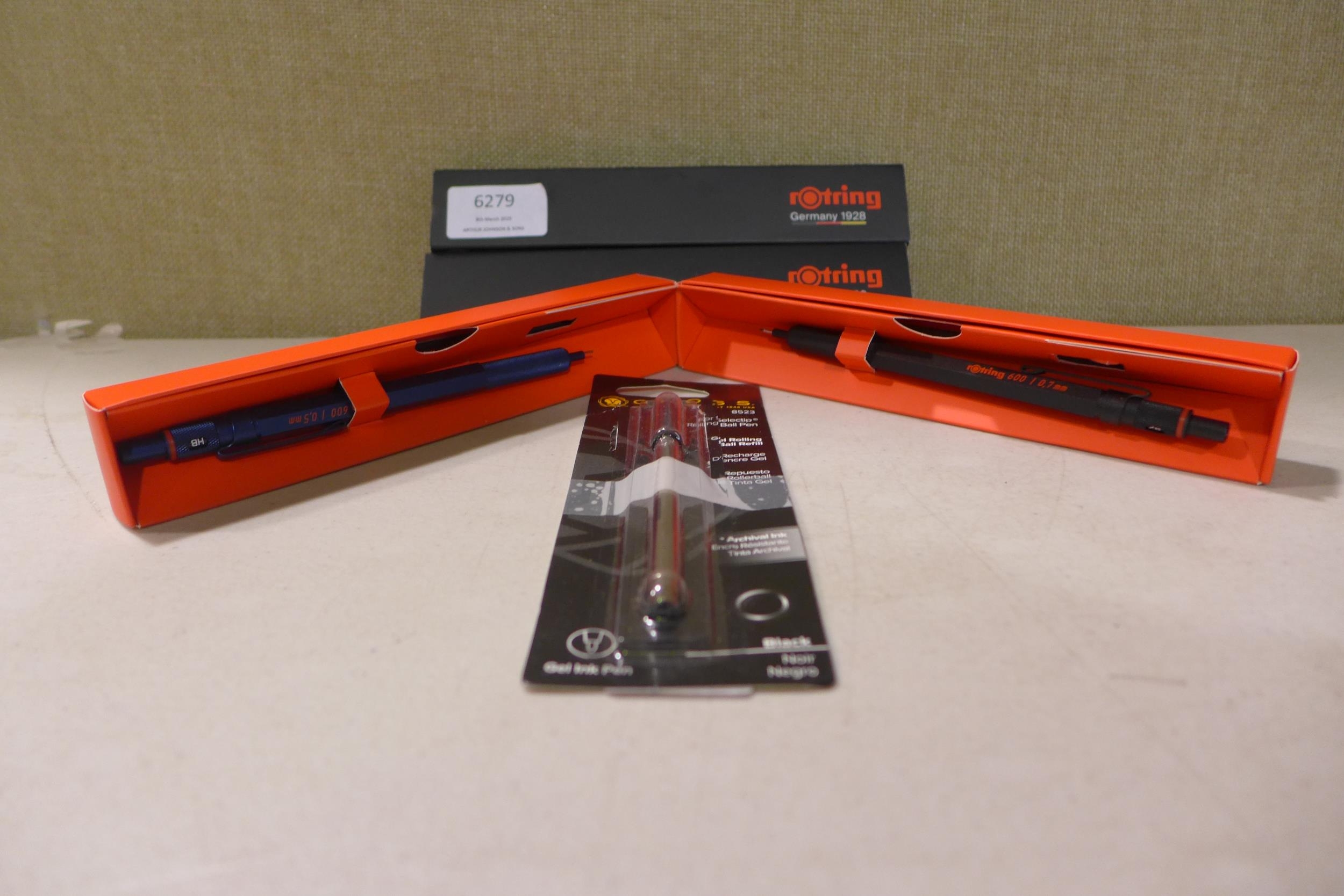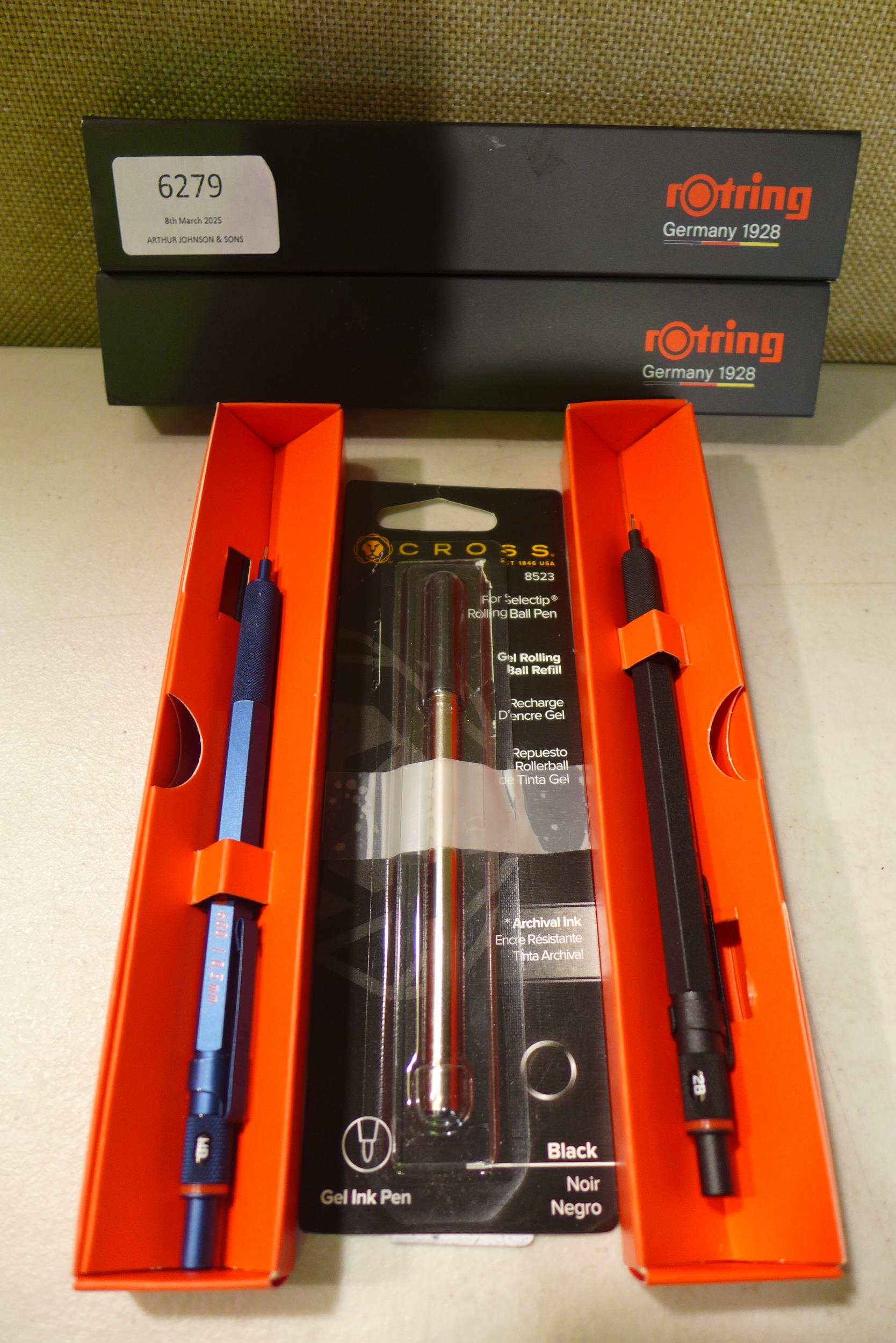 Two Rotring fine pens and a Cross gel ink pen black refill *This lot is subject to VAT