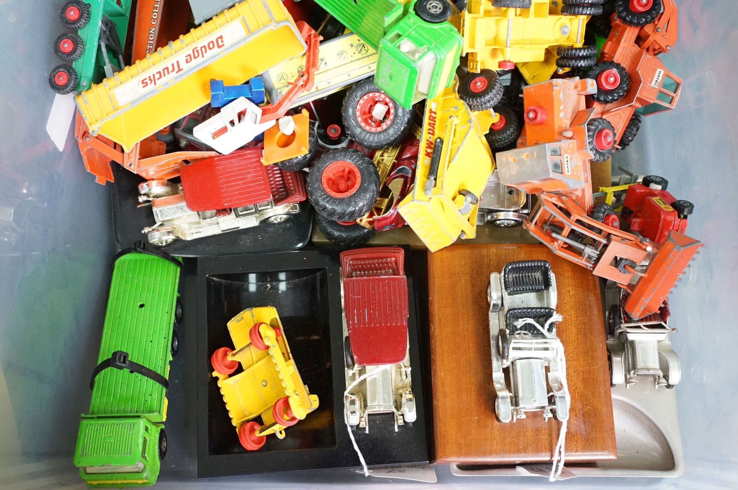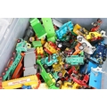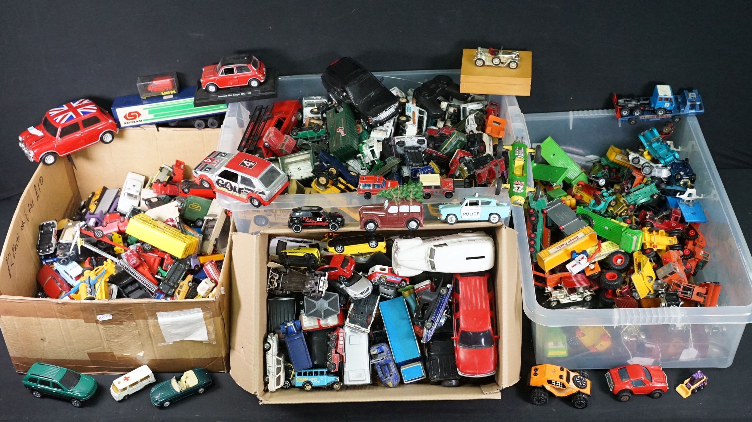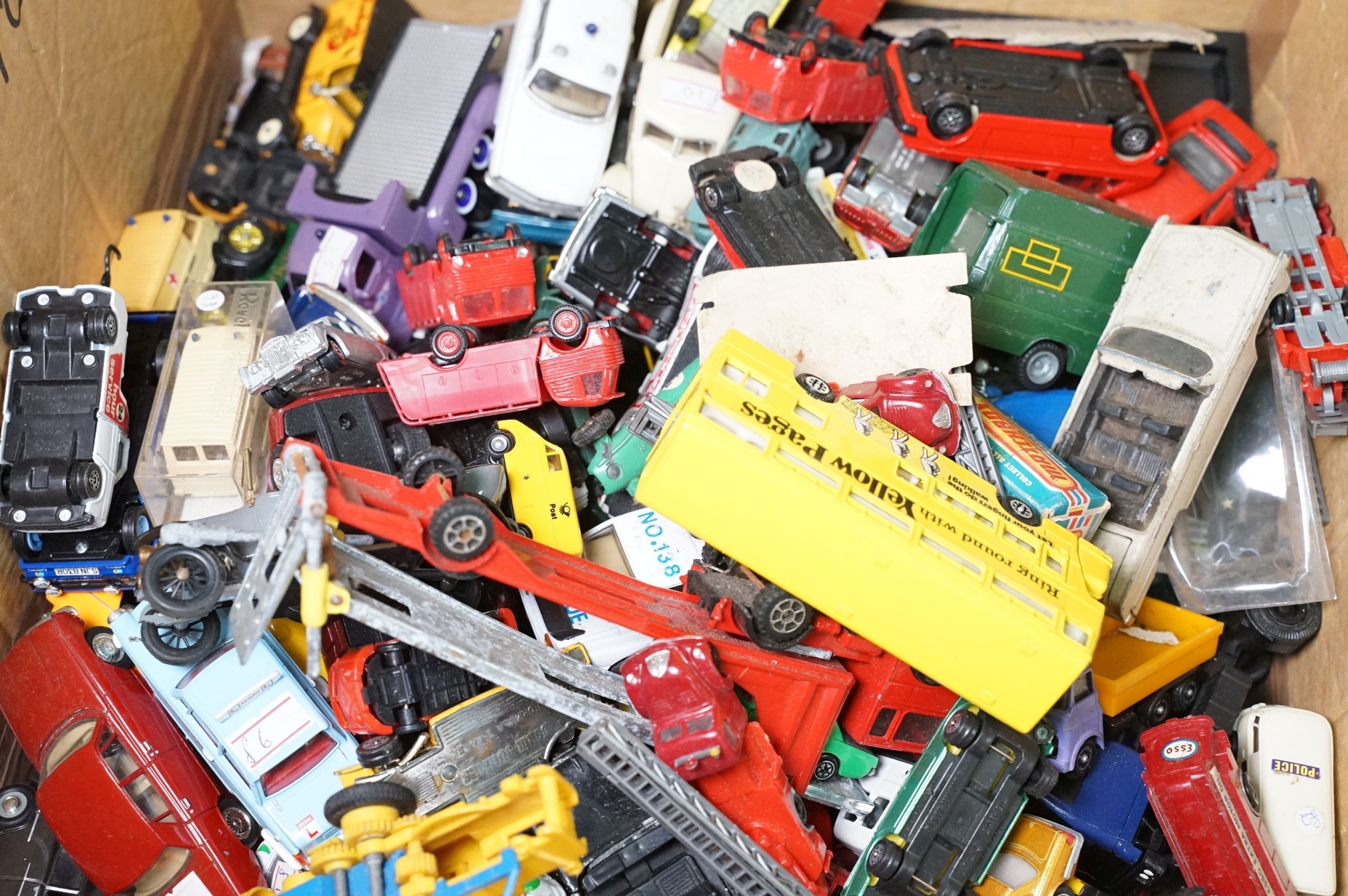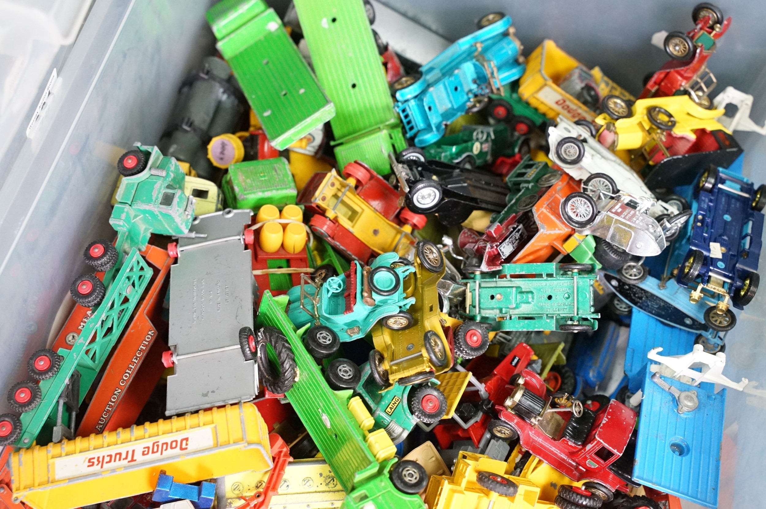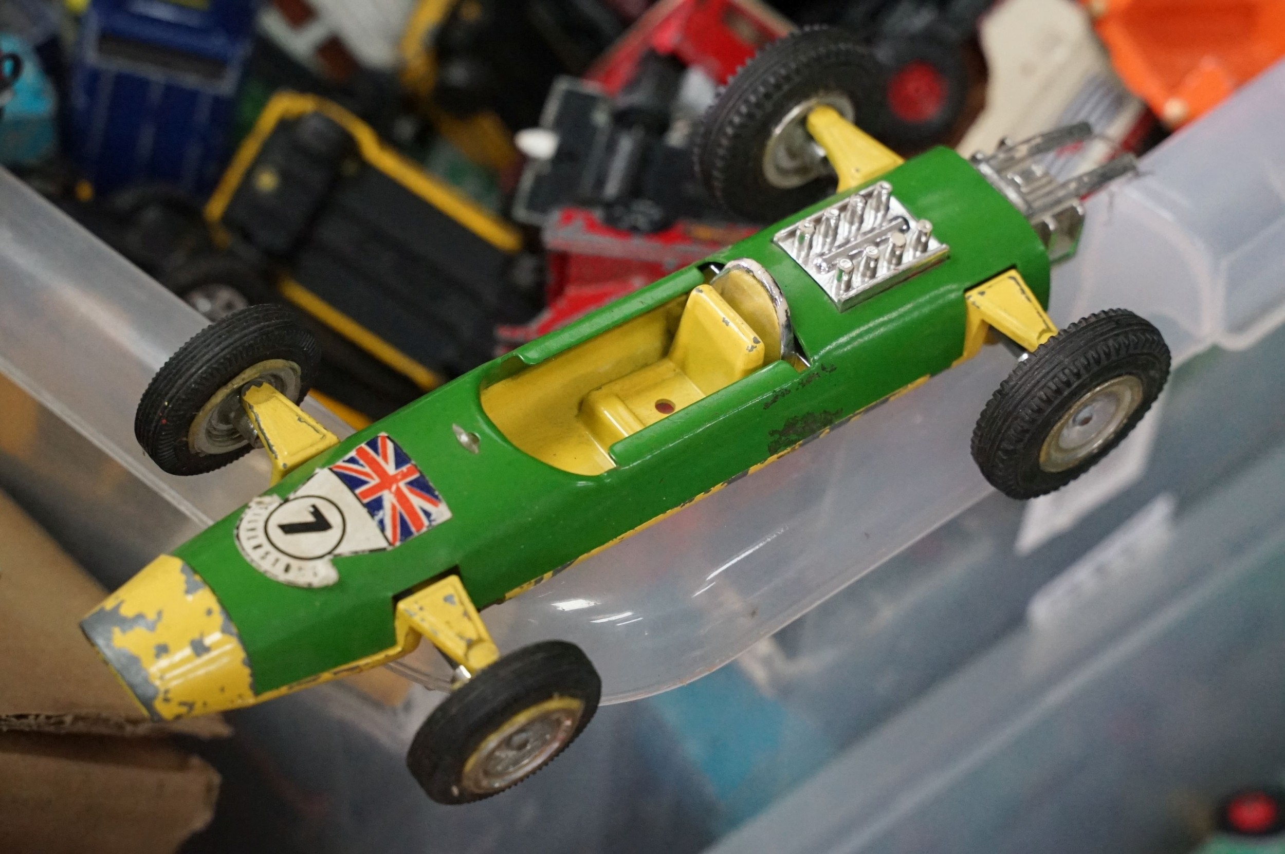 Large quantity of play worn diecast & plastic models circa 1970s onwards to include Matchbox, Corgi, Majorette, Britains etc including Land Rover and Range Rover examples (4 boxes)