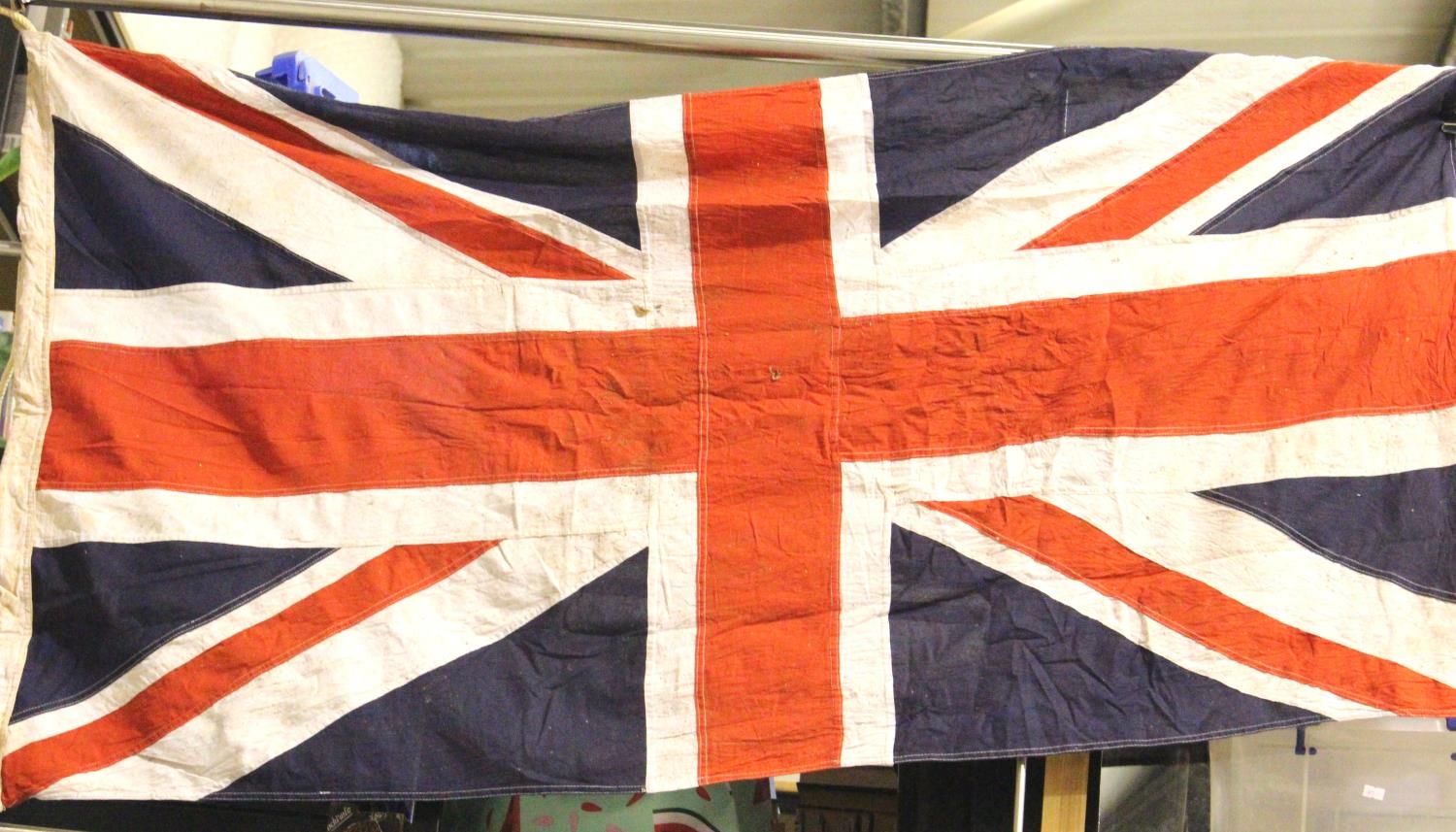 British WWII Union flag, War Department stamped, dated 1943 and named to the Suffolk Regiment, believed period, 150 x 90 cm. P&P Group 1 (£14+VAT for the first lot and £1+VAT for subsequent lots)