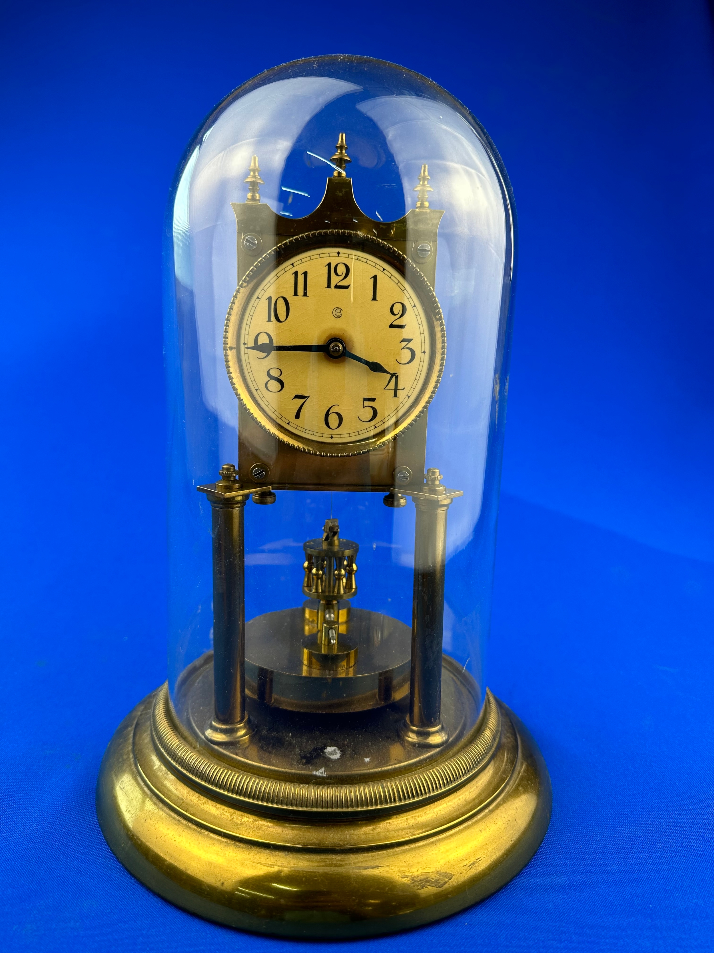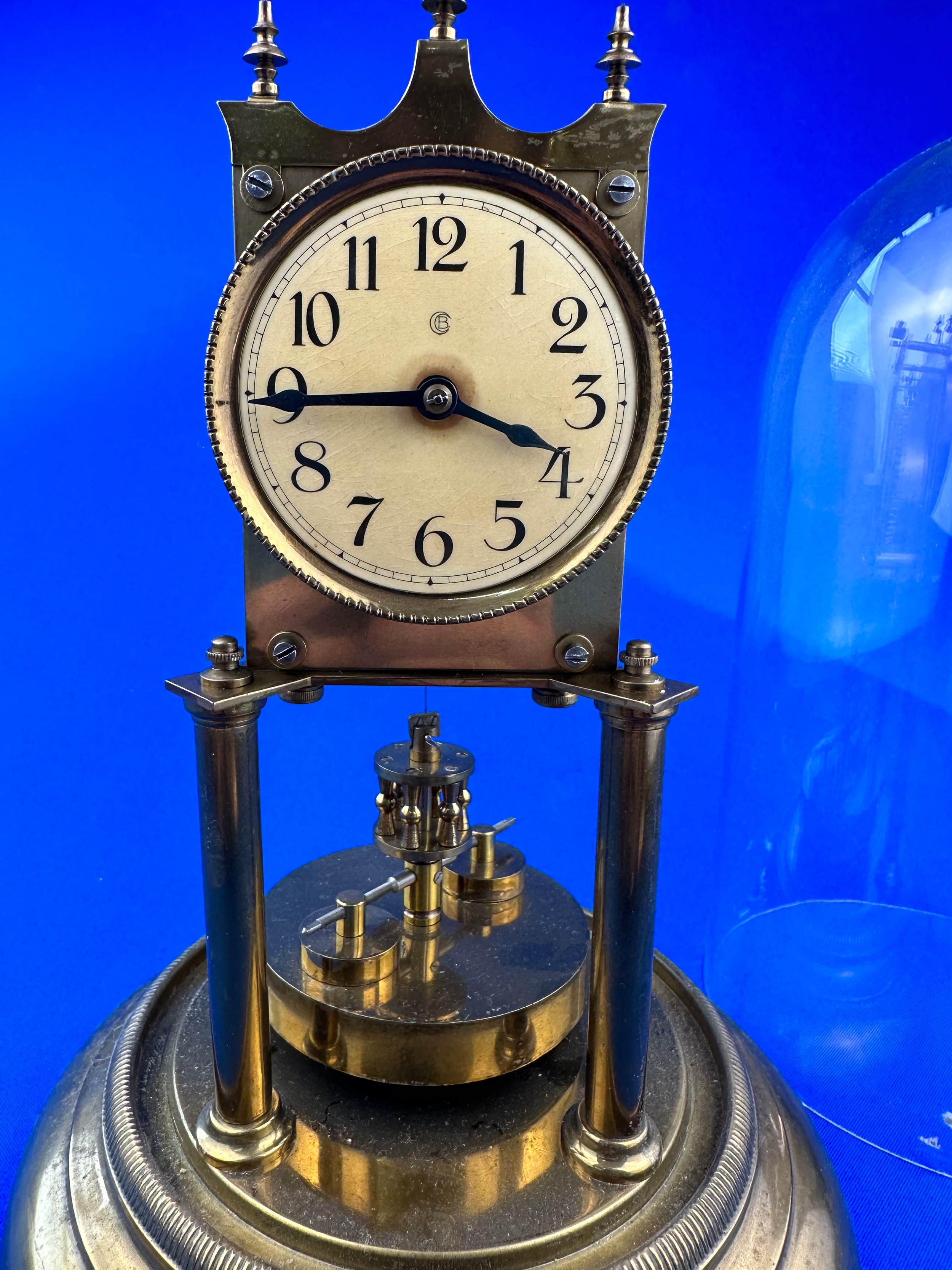 Early 20th Century Brass 400 Day Anniversary Clock With Disk Pendulum