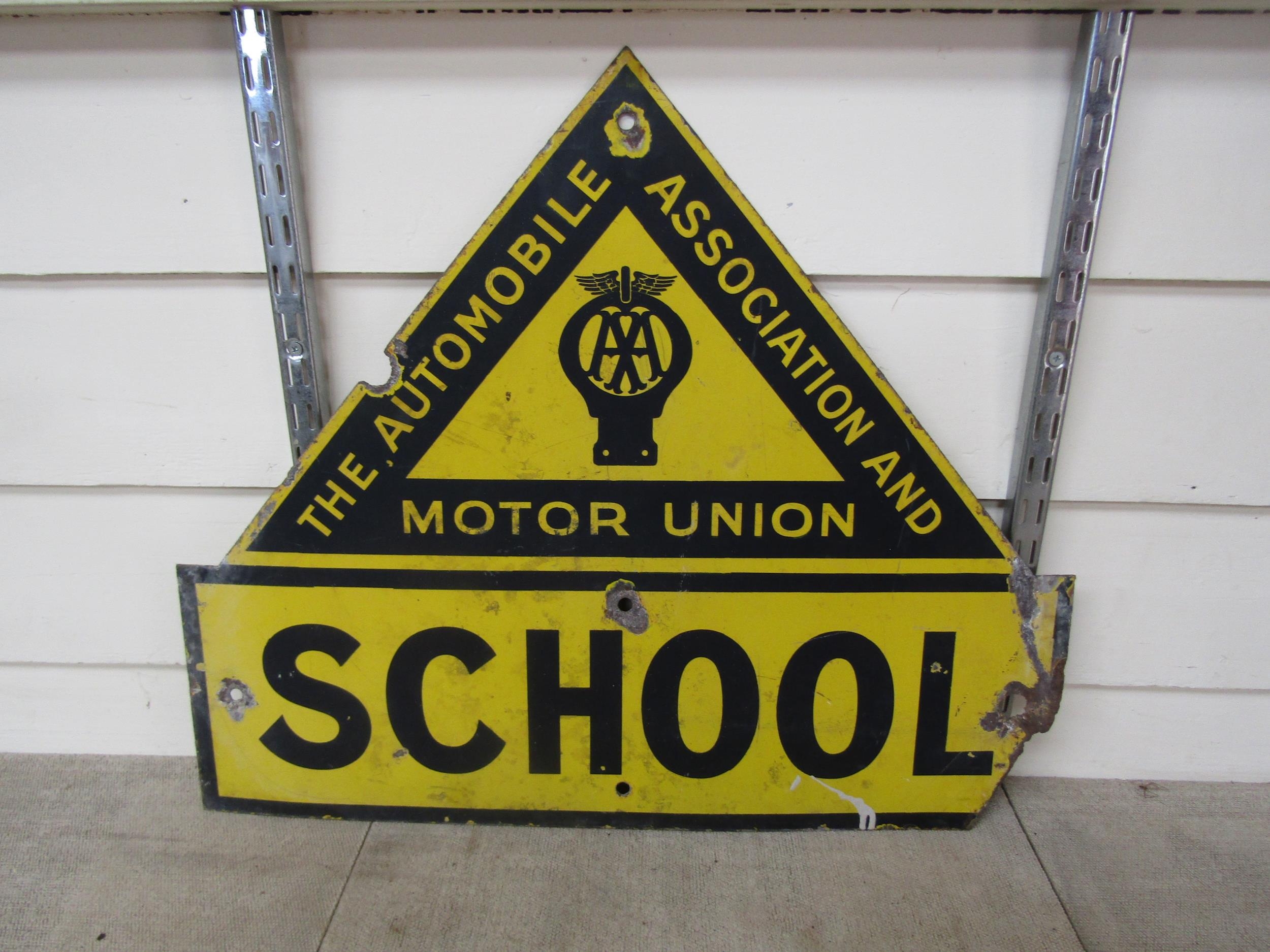 An enamelled AA 'Motor Union' school sign a/f 56cm x 66cm