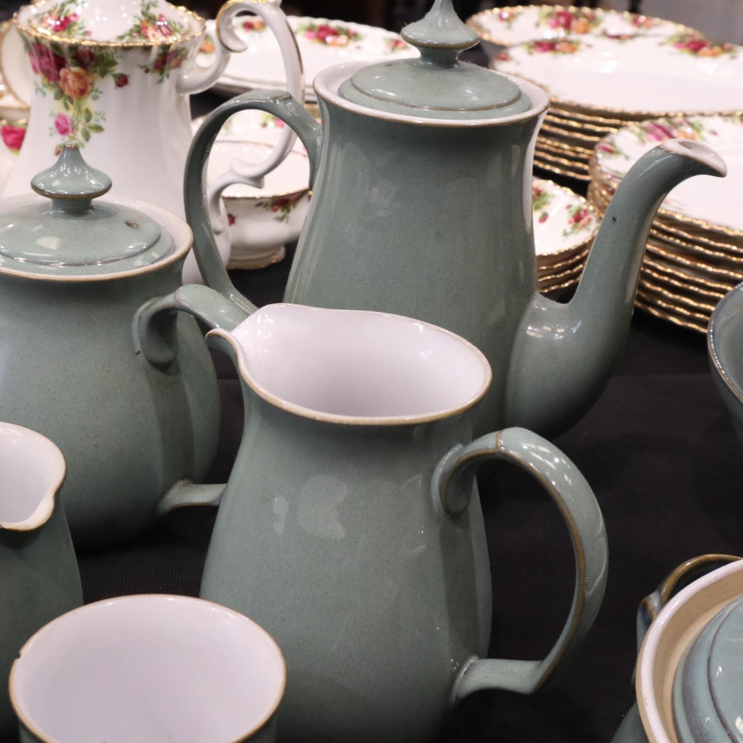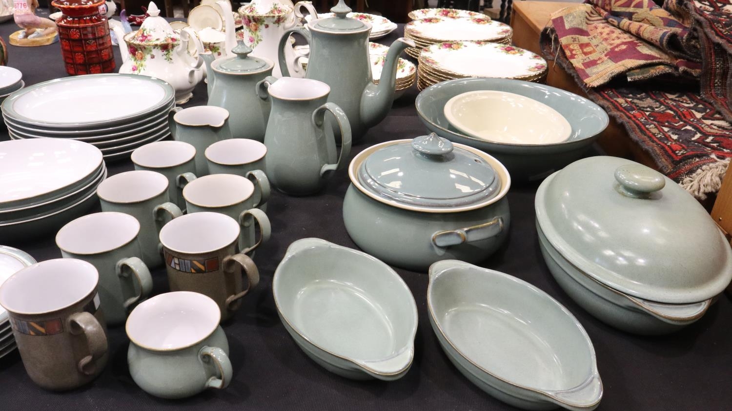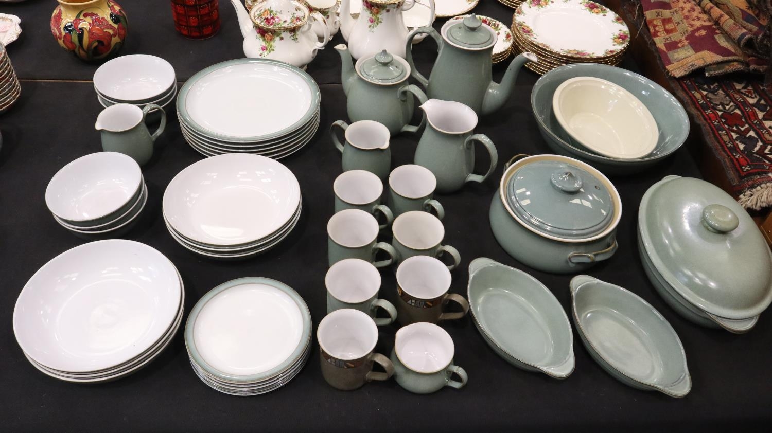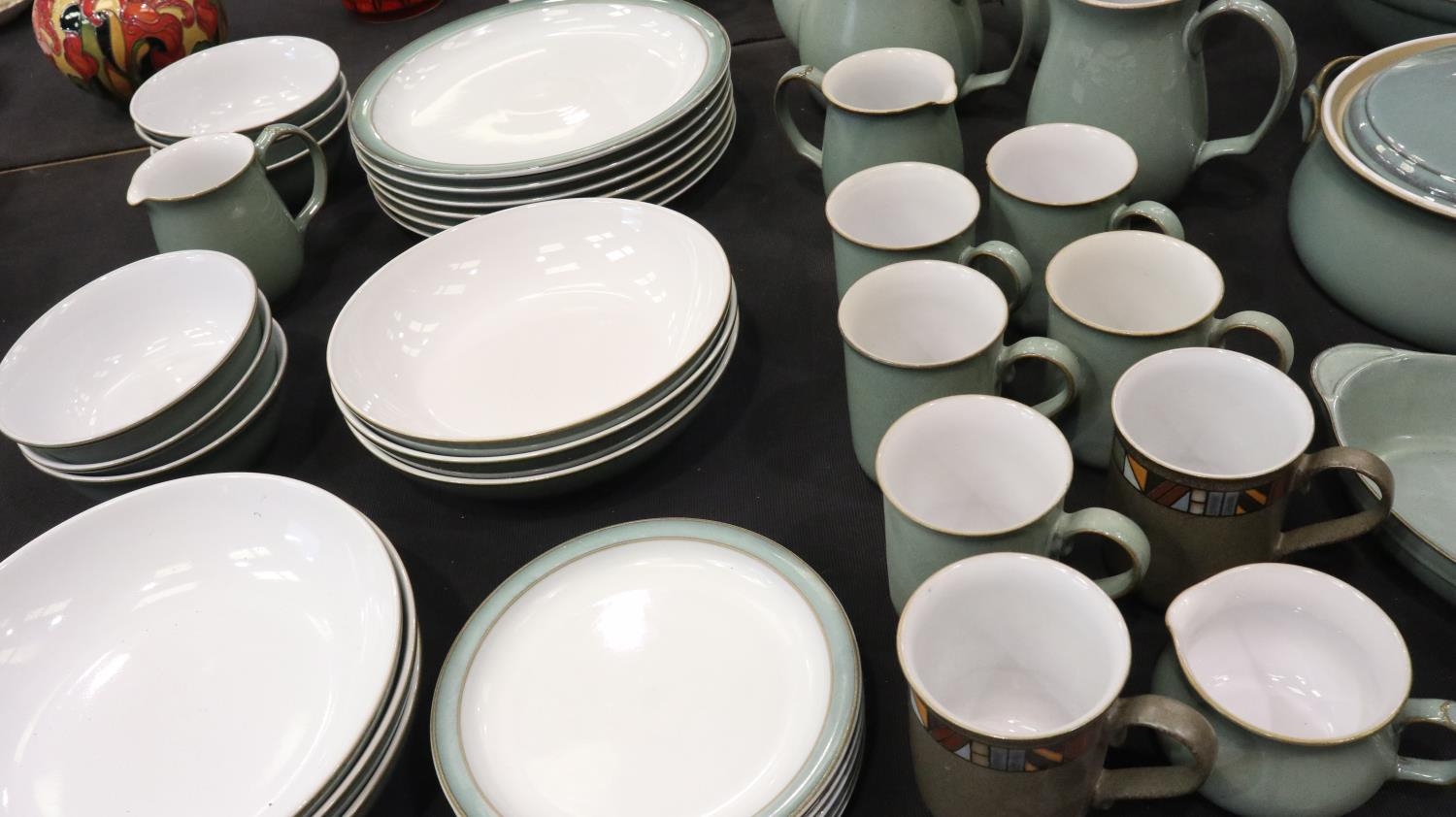 Denby dinner and coffee service of thirty-nine pieces in the Regency Green colourway. Not available for in-house P&P