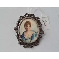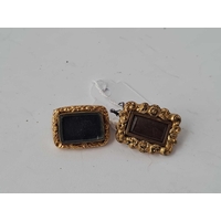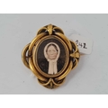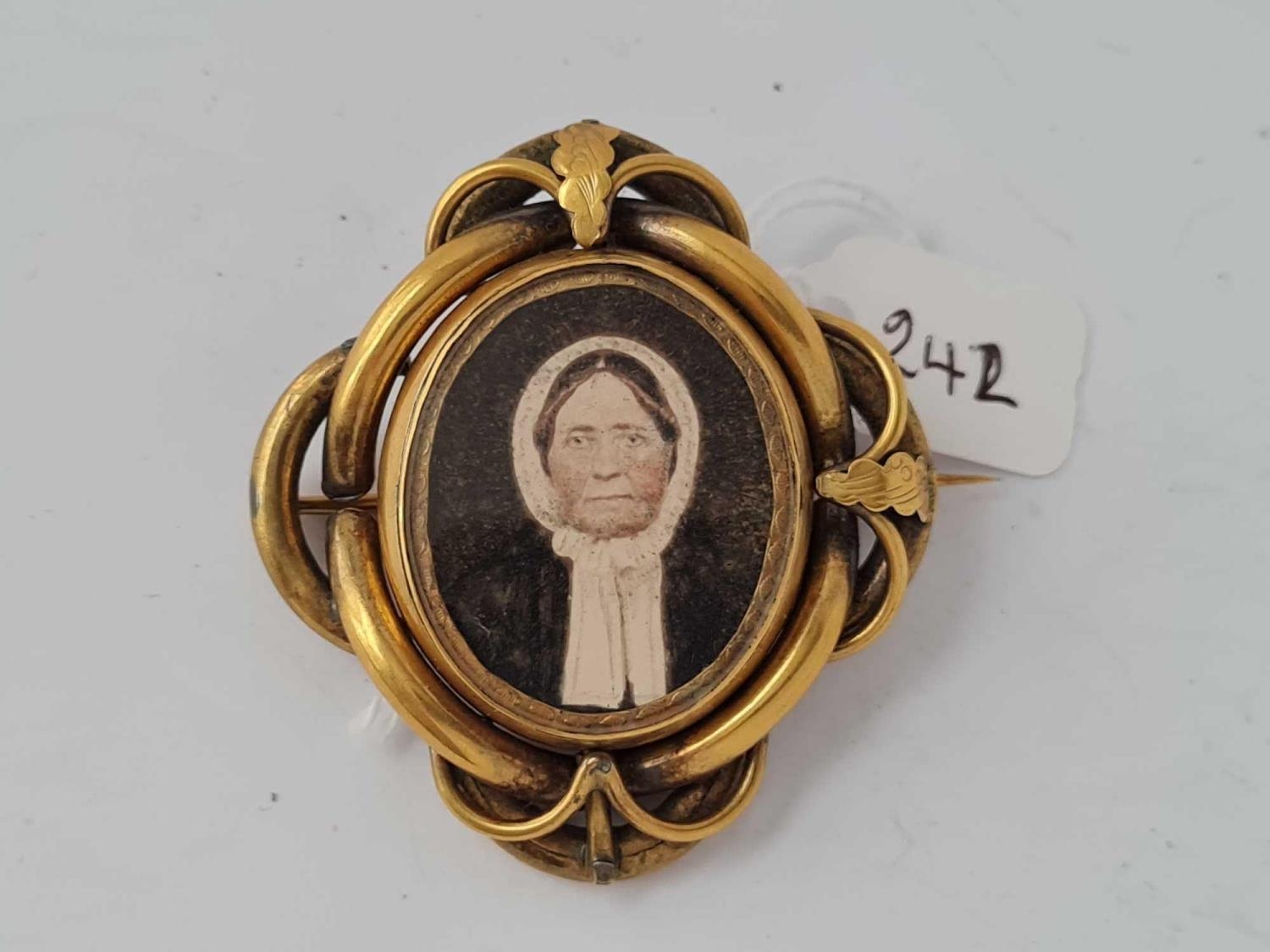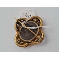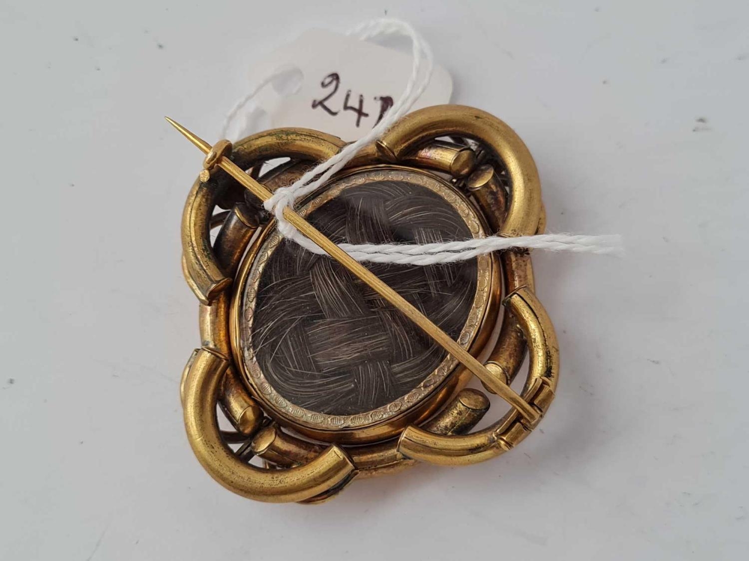 A large Victorian knot design gilt mourning photo brooch with rear hair panel