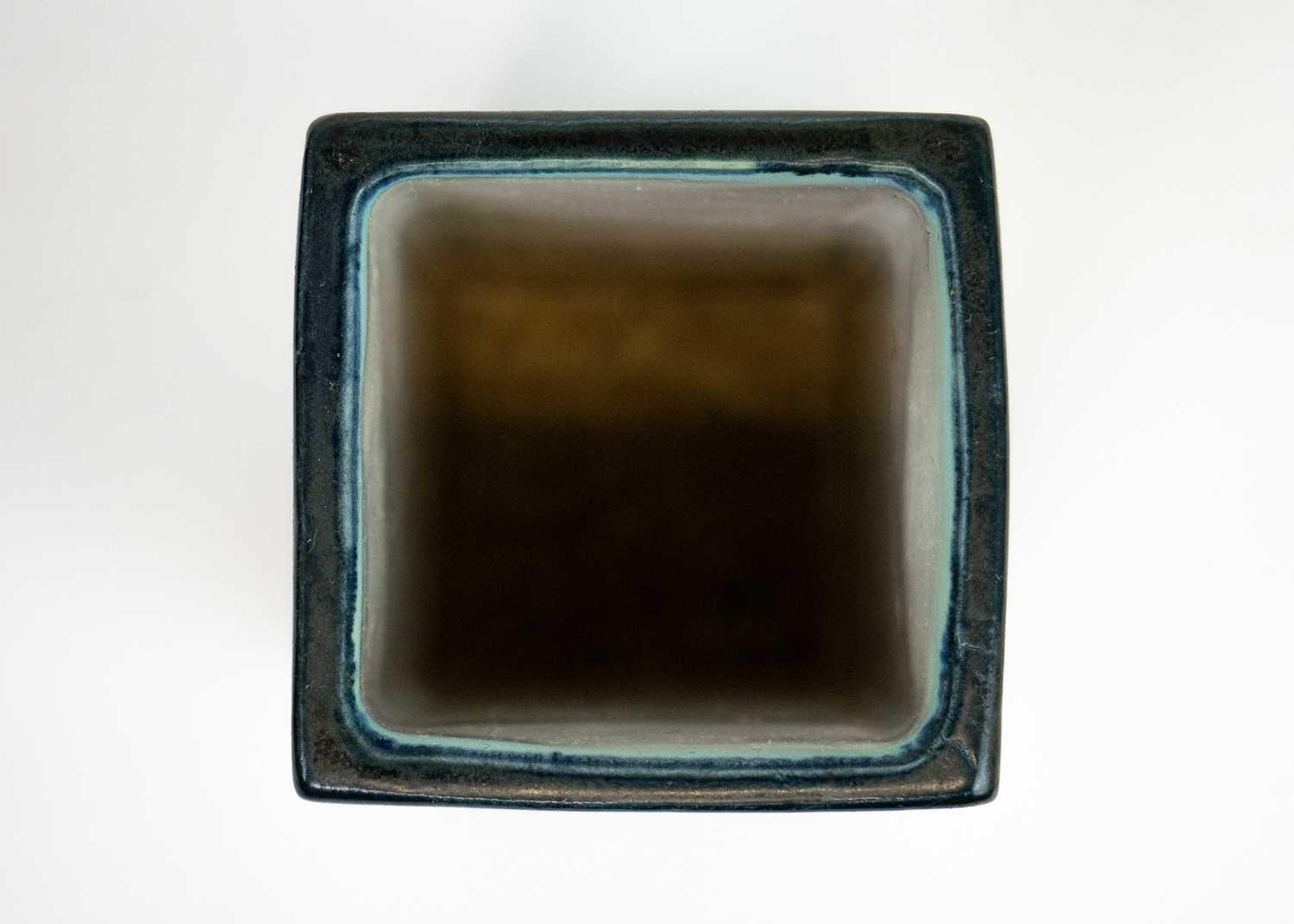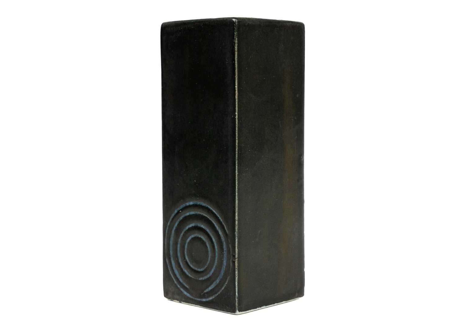 A Troika St Ives square section vase. With smooth glaze,incised with concentric circles, printed mark, height 12cm.
