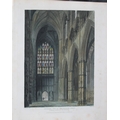 One of the quintessential English Regency colour-plate books. This work is a superbly illustrated study of one of the most interesting edifices in the British Empire. Its remote antiquity, its edificial beauty, the character and variety of its architecture, as well as the ornament it affords to the metropolis, give it a superior distinction. Ackermann employed a variety of artists to bring out in the plates the lustre of stained glass windows and the dim religious light of the chapels.