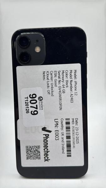 APPLE IPHONE 12 / A2403 / 64GB / IMEI: 353036119168141 / I-CLOUD UNLOCKED
